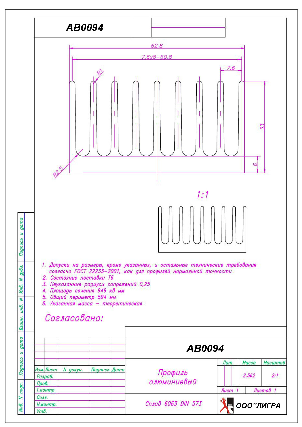 Профиль АВ0094 (160 мм) - Профиль радиаторный прессованный нормальной точности