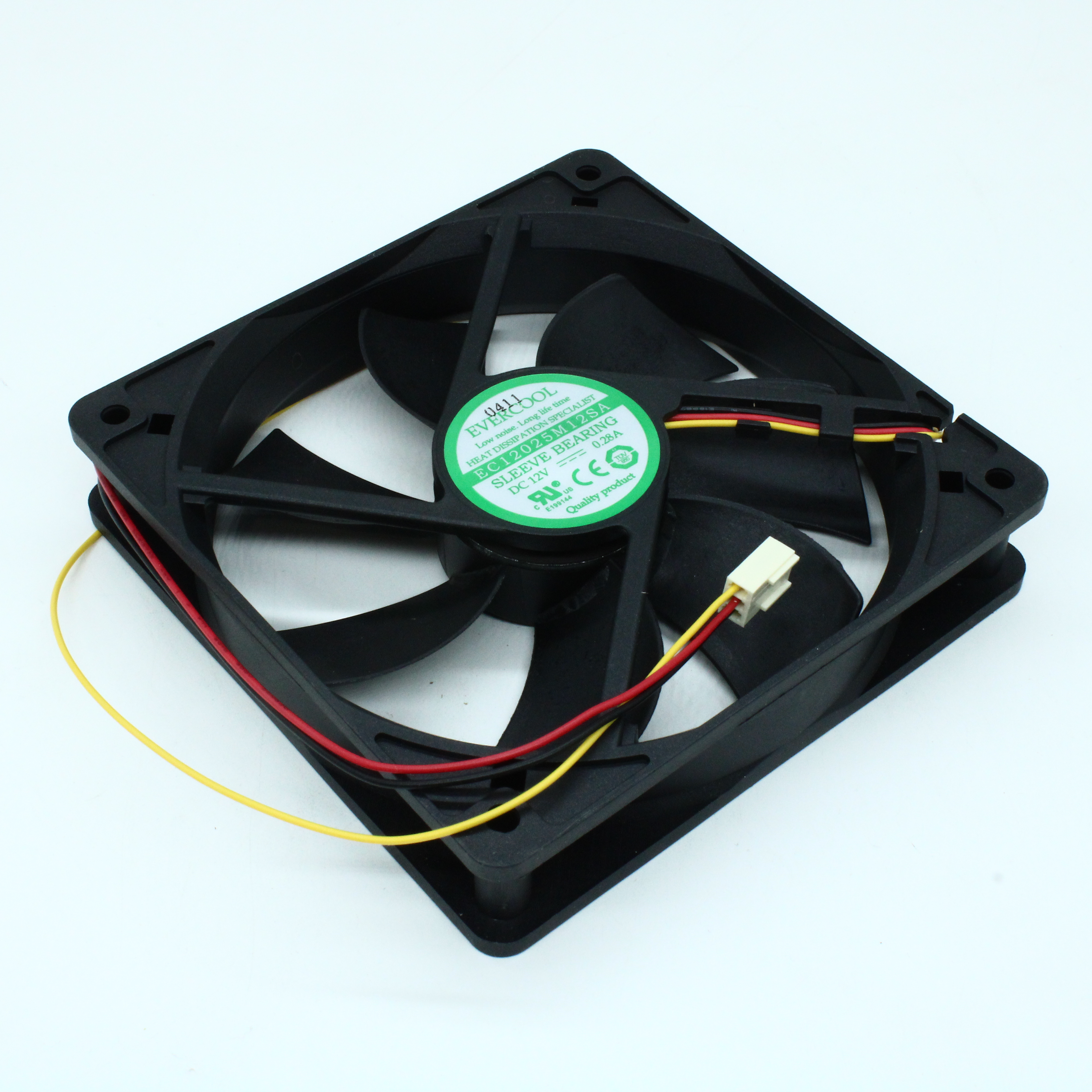 EC12025M12SA - Вентилятор 12В, 120х120х25мм, 143.6 м3/час, 41dB, подшипник скольжения, 2300 об/мин, три провода на разъеме