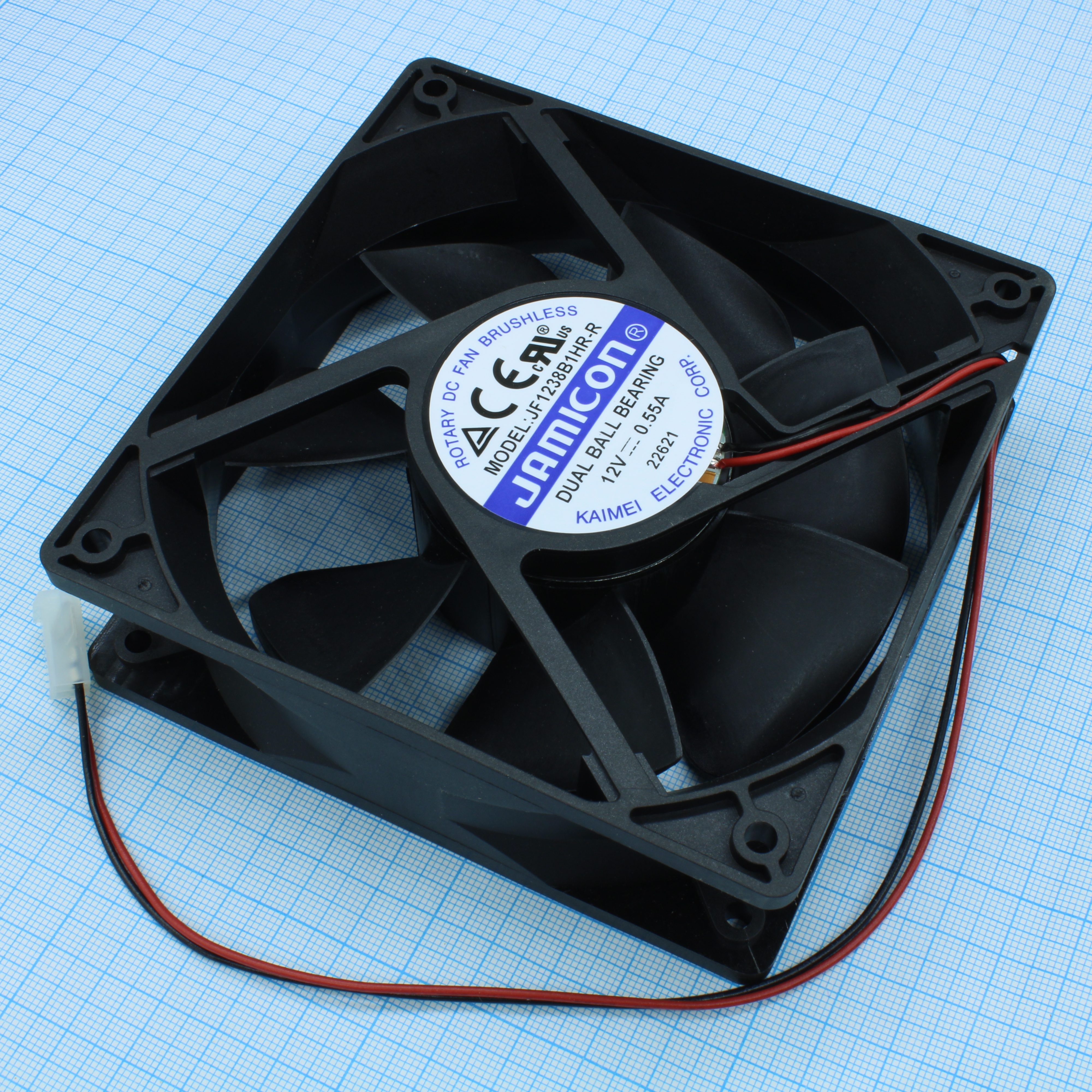 JF1238B1HR-R - Вентилятор 12В DC, 0.55А, 2800об/мин., 3.85м3/мин, 120х120х38мм, сдвоенный подшипник качения