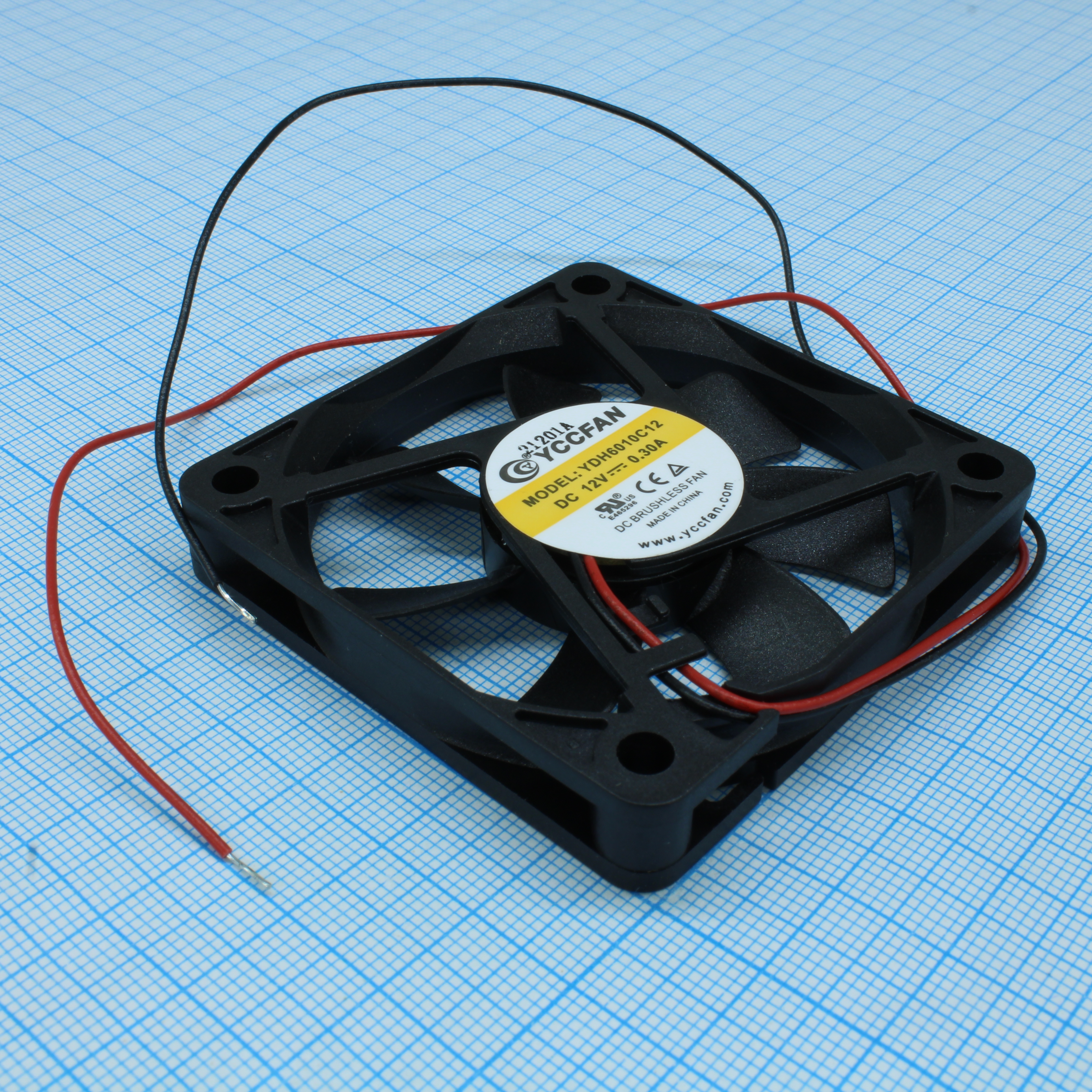 YDH6010C12 - Вентилятор 12В 60х60x10 C, 1.8Вт, 5000 об/мин, 30.64м3/час, 33.84дБ, подшипник скольжения CycleSeal, тип вывода - провод
