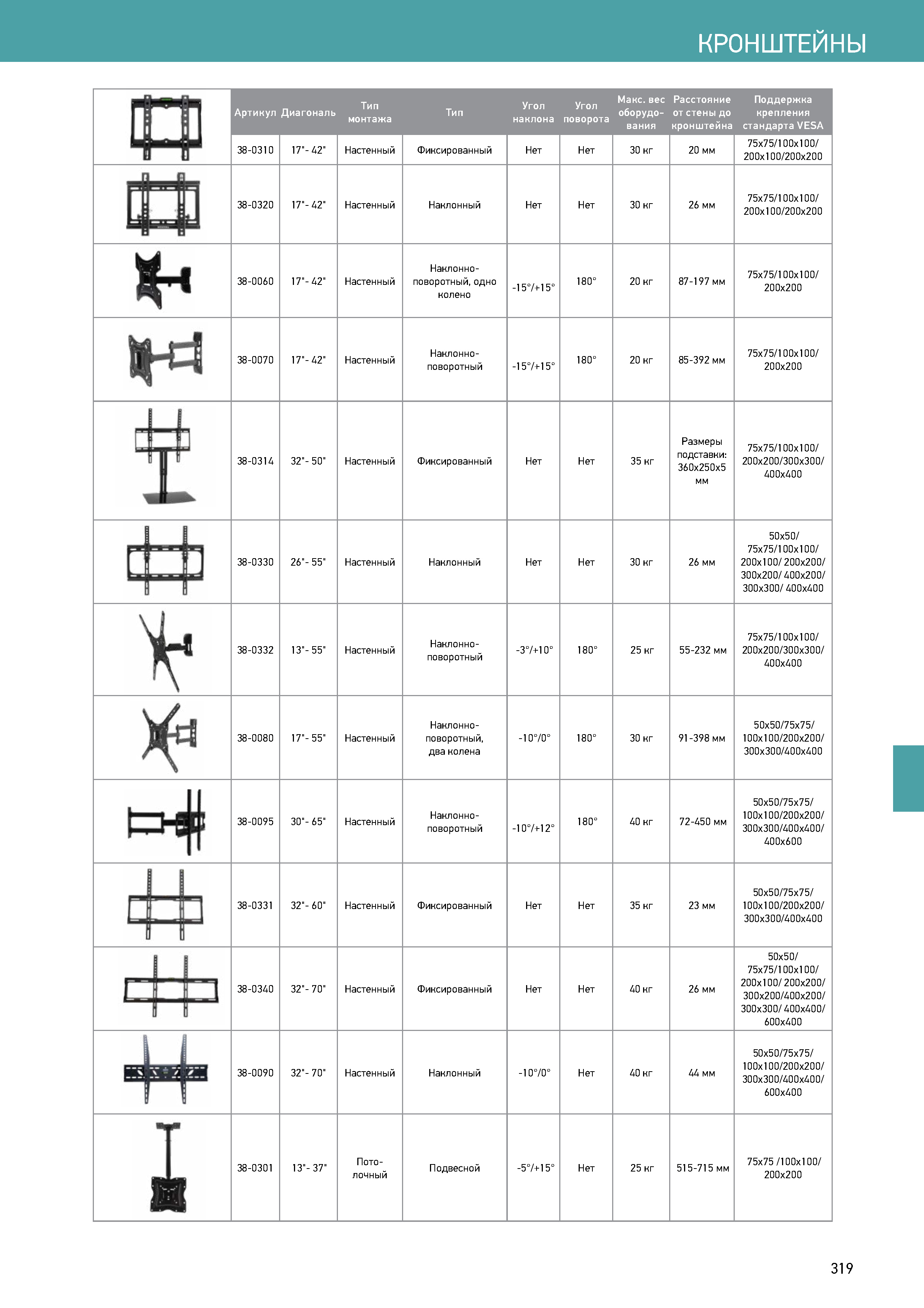 Кронштейн для телевизора 32"-70", фиксированный 38-0340