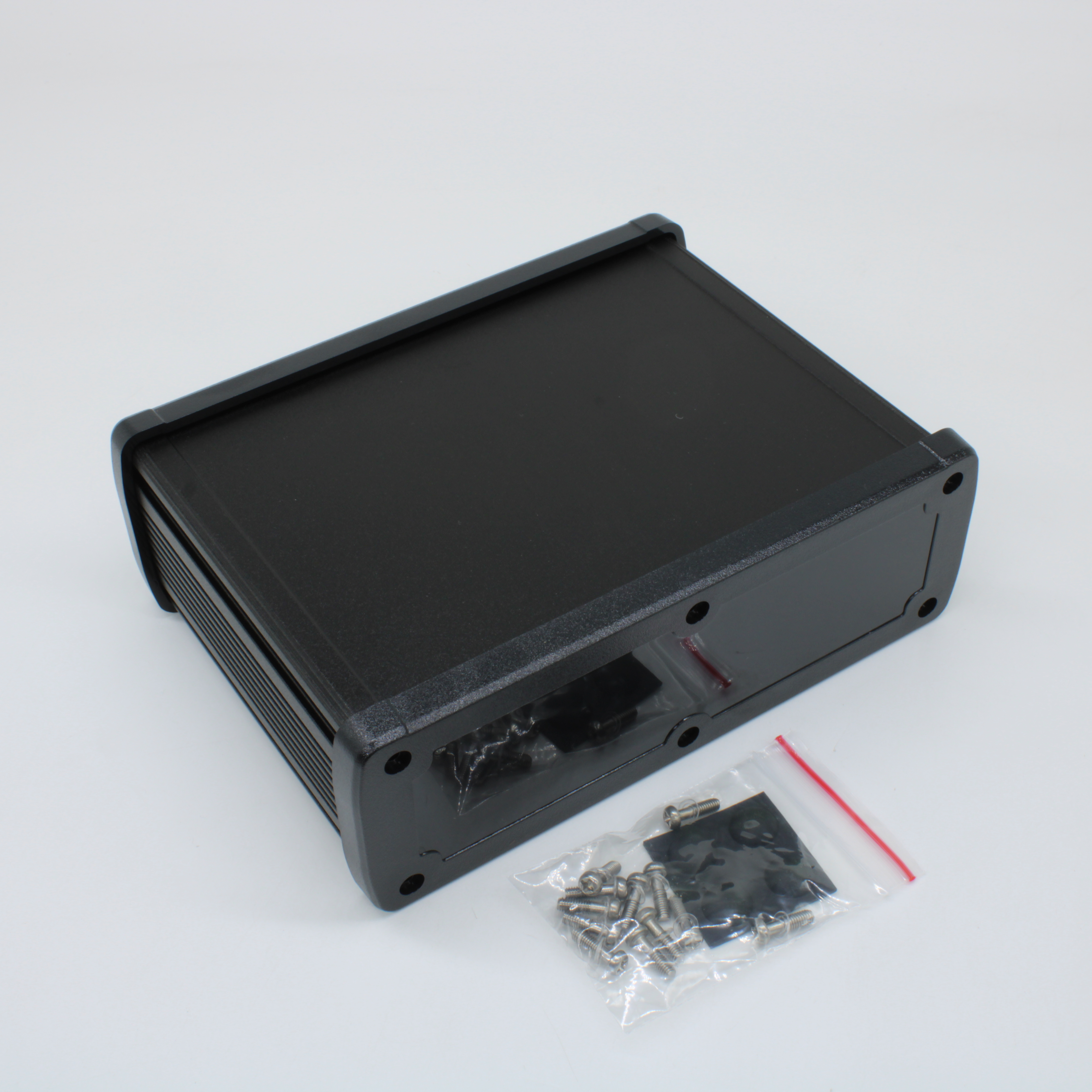 Алюминиевый черный корпус с черными пластиковыми торцевыми панелями