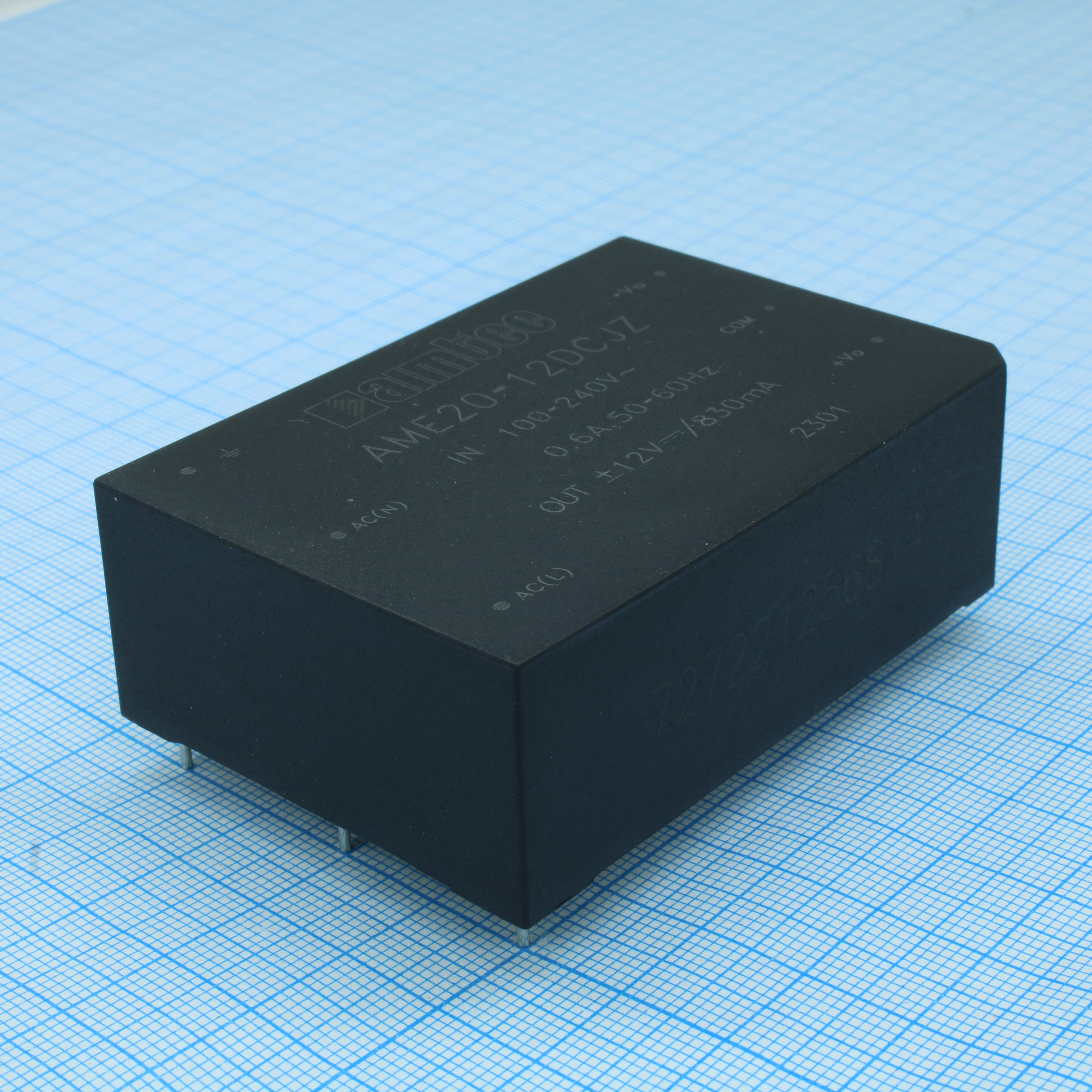 AME20-12DCJZ - AC/DC, 20Вт, вход 85…264В, выход ±12В/±0.83А, изоляция 3000В AC, КПД 82%, максимальная емкостная нагрузка не более ±960мкФ, 70x48x23.5мм, -25…70°C, пластик
