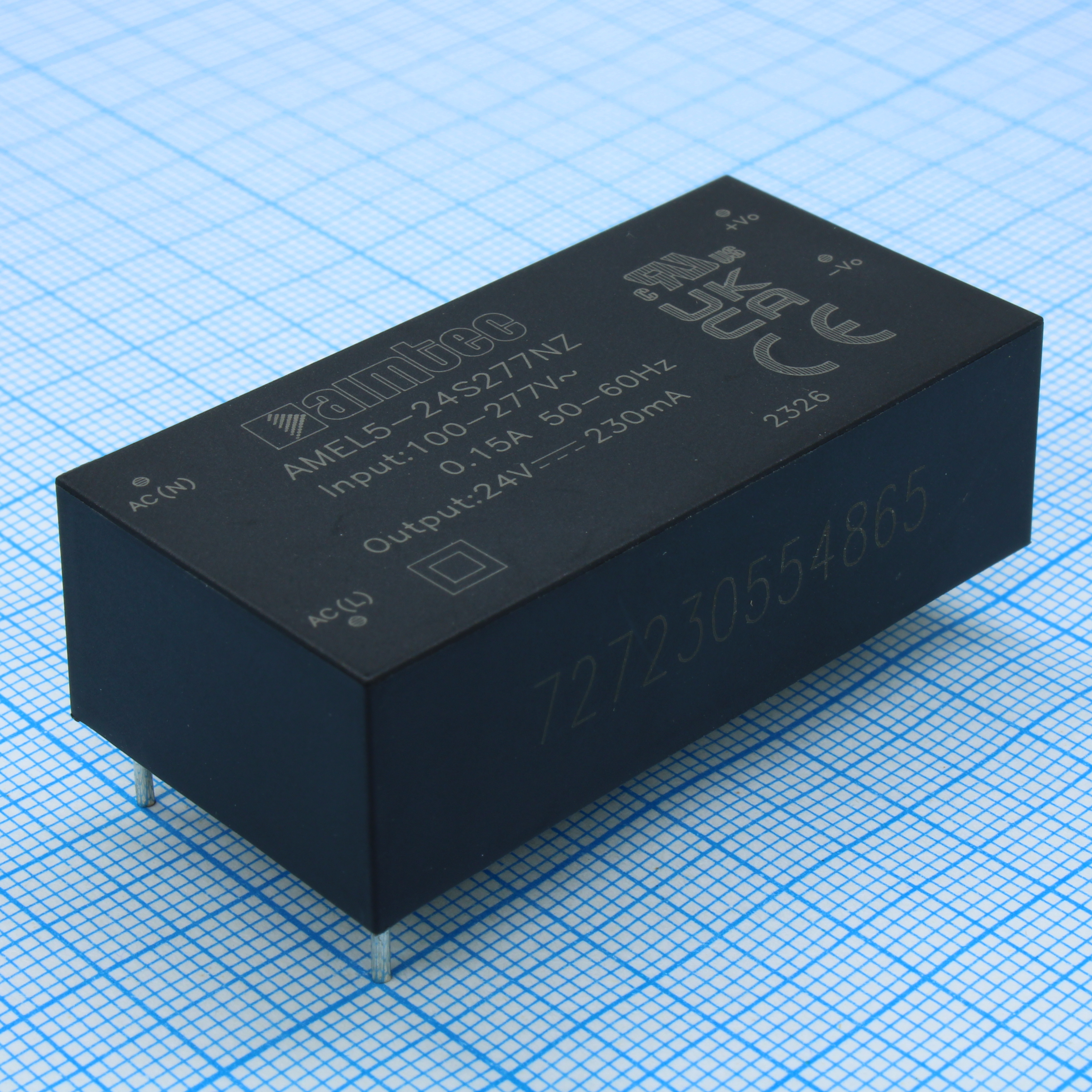 AMEL5-24S277NZ - AC/DC, 5.5Вт, вход 85…305В, выход 24В/0.23А, изоляция 4000В AC, КПД 80%, максимальная емкостная нагрузка не более 470мкФ, 25.4x50.8x15.36мм, -40…70°C, пластик