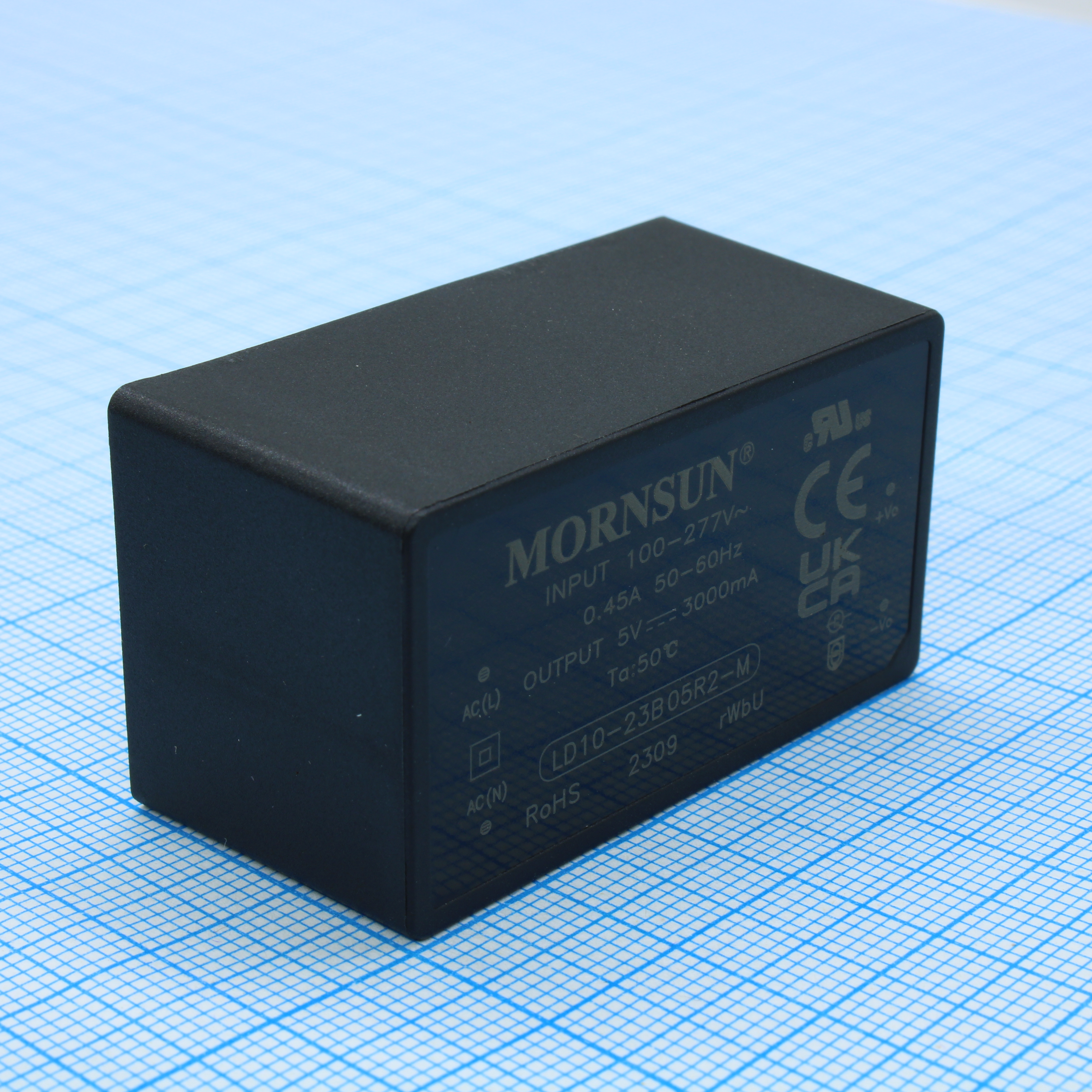 LD10-23B05R2-M - AC-DC, 10Вт, вход 85…305В AC 47…63 Гц, 100…430B DC, выход 5В/2А, изоляция 4000В AC, КПД 85%, в корпусе на плату 47.6х26.8х23.5мм, -40...+85°C