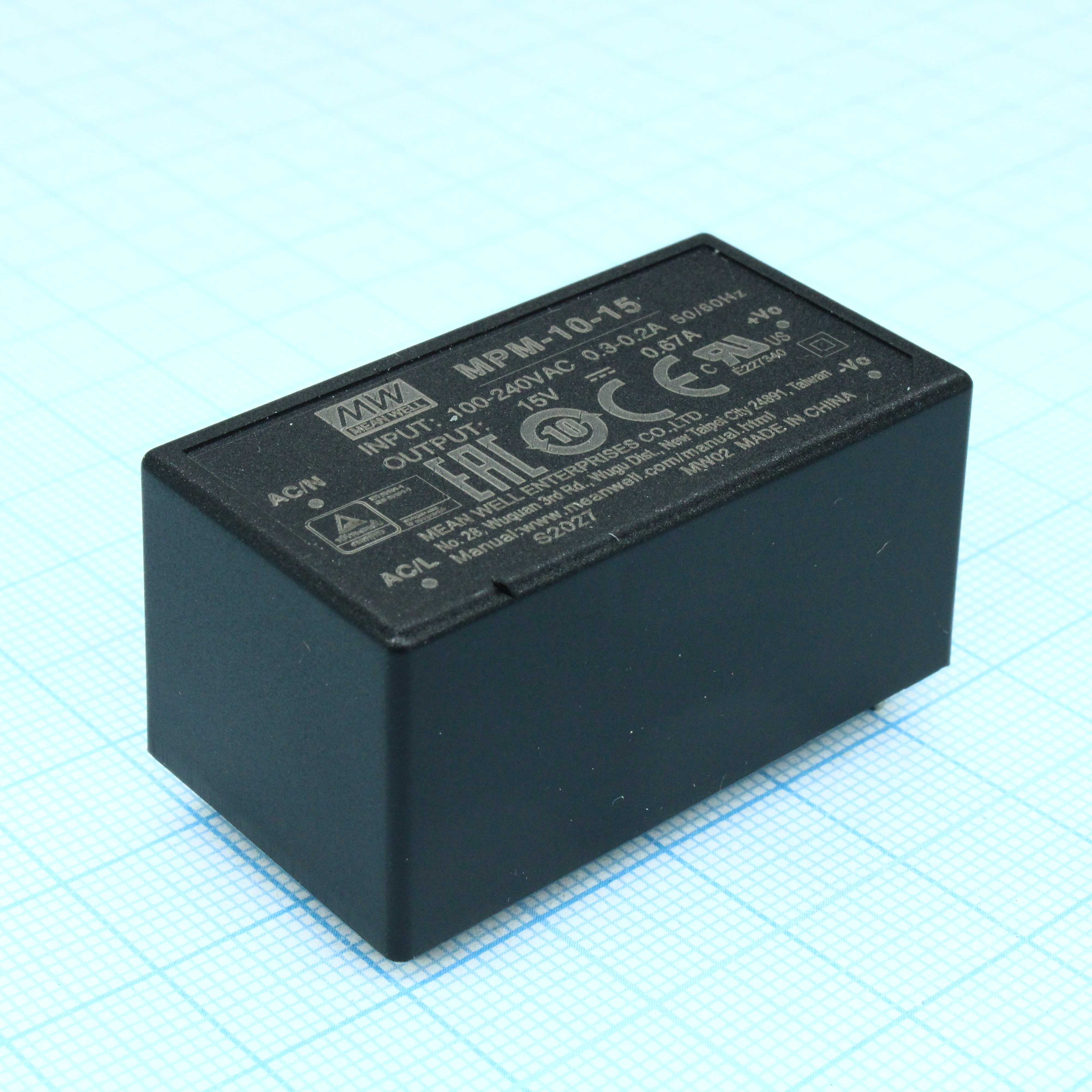 MPM-10-15 - AC-DC med, 10Вт, вход 80...264В AC 47...440 Гц, выход 15В/0.67А, изоляция 4000В AC, на плату, 45.7х25.4х21.5мм, -40...+85°C