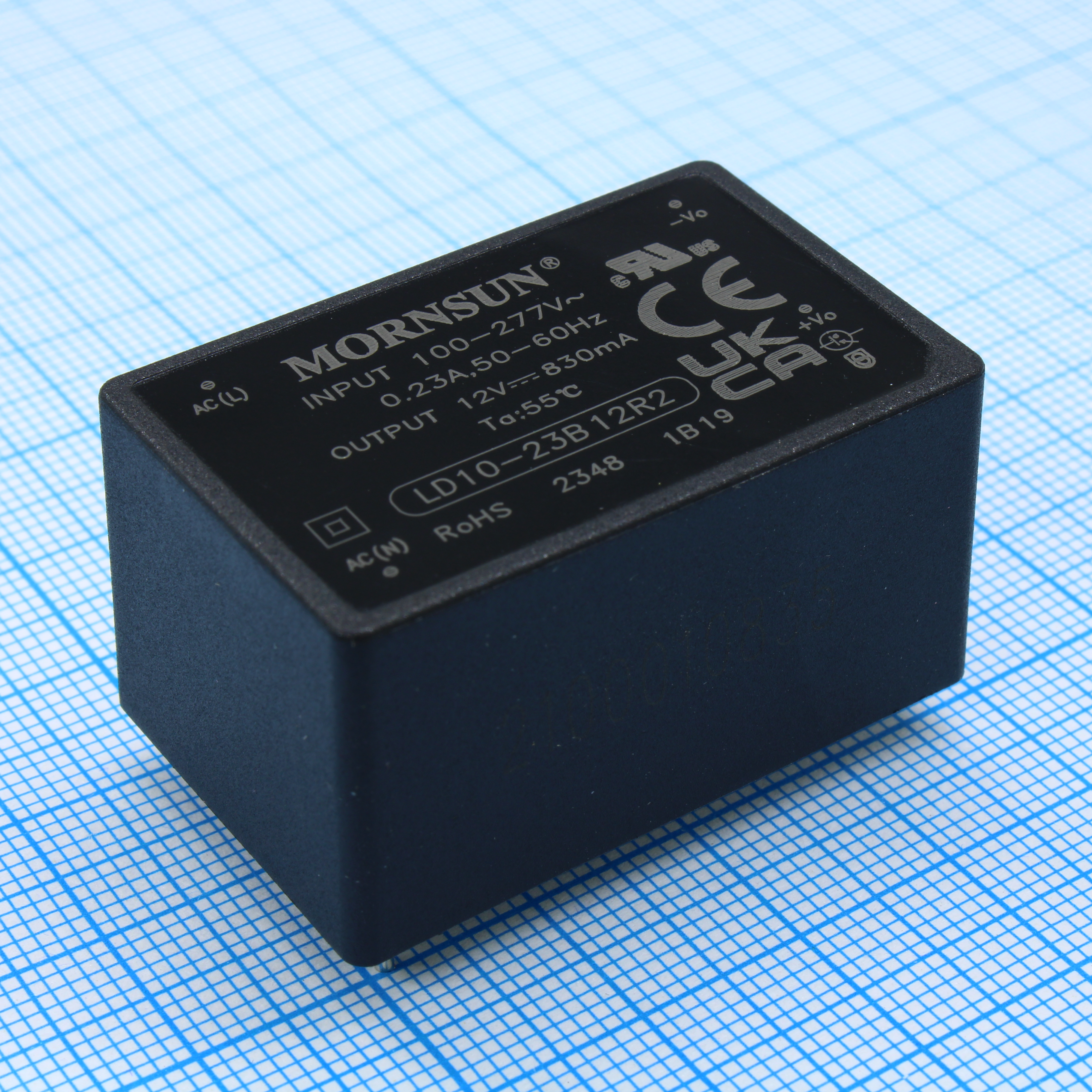 LD10-23B12R2 - AC-DC, 10Вт, вход 85…305В AC 47…63 Гц, 100…430B DC, выход 12В/0.83А, изоляция 4000В AC, КПД 84%, в корпусе на плату 40х25.4х21мм, -40...+85°C