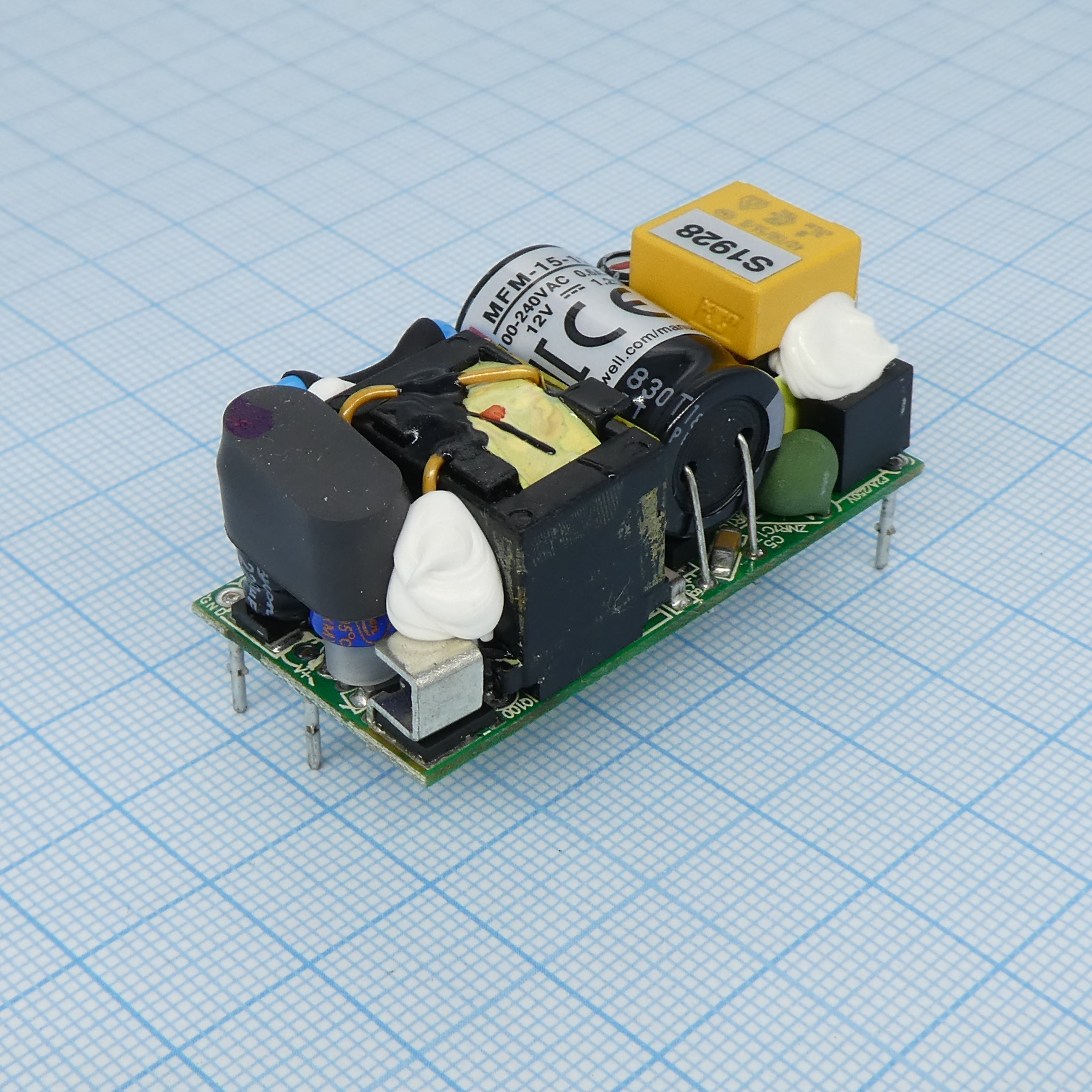 MFM-15-12 - AC-DC med, 15Вт, вход 80...264В AC 47...440 Гц, выход 12В/1.25А, изоляция 4000В AC, на плате 49х23.8х23мм, -35...+85°C
