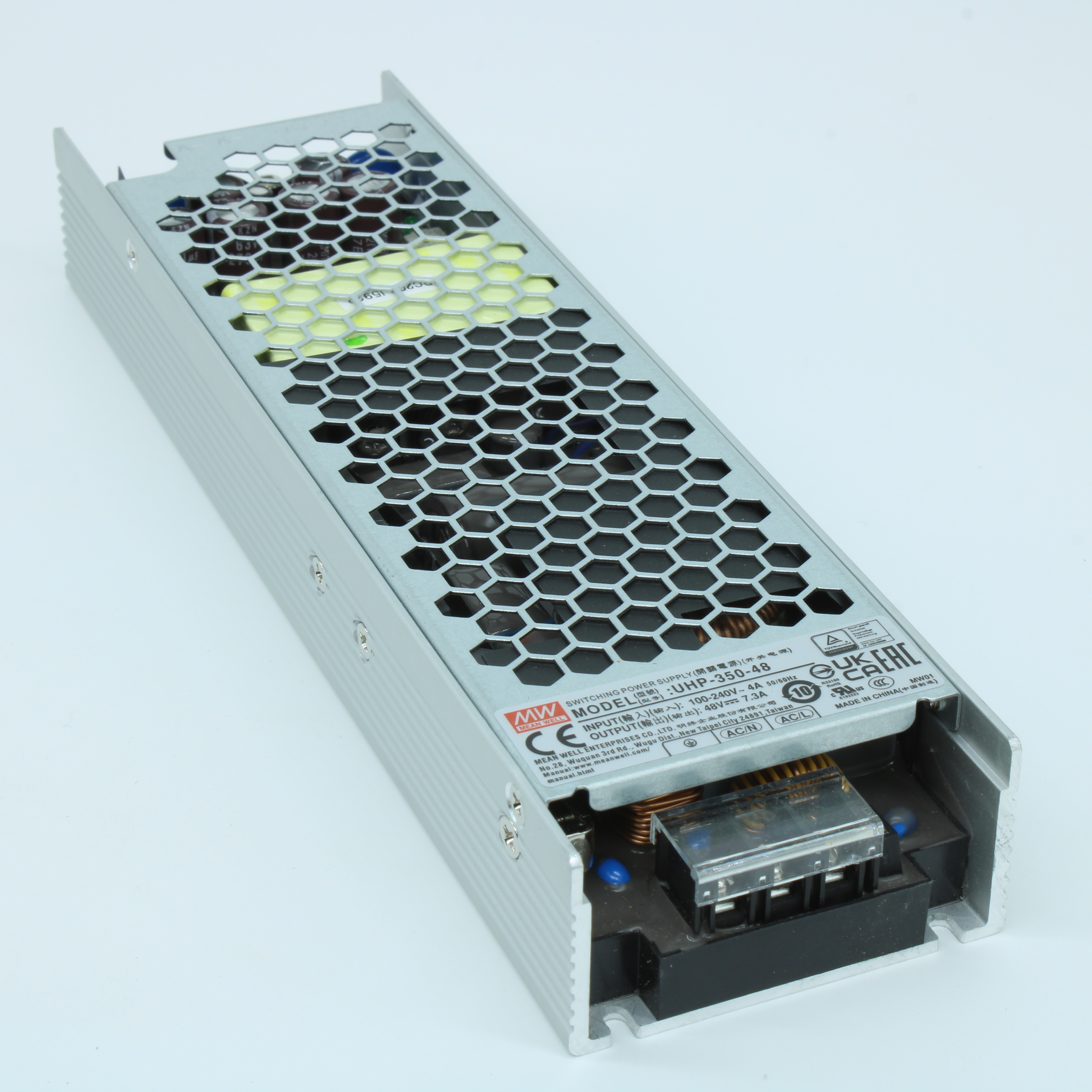 UHP-350-48 - AC-DC, 350.4Вт, вход 90…264В AC, 47…63Гц, выход 48В/7.3A, ККМ, рег. вых 45.6…50.4В, изоляция 3750В AC, в кожухе 220х62х31мм, -30…+70°С