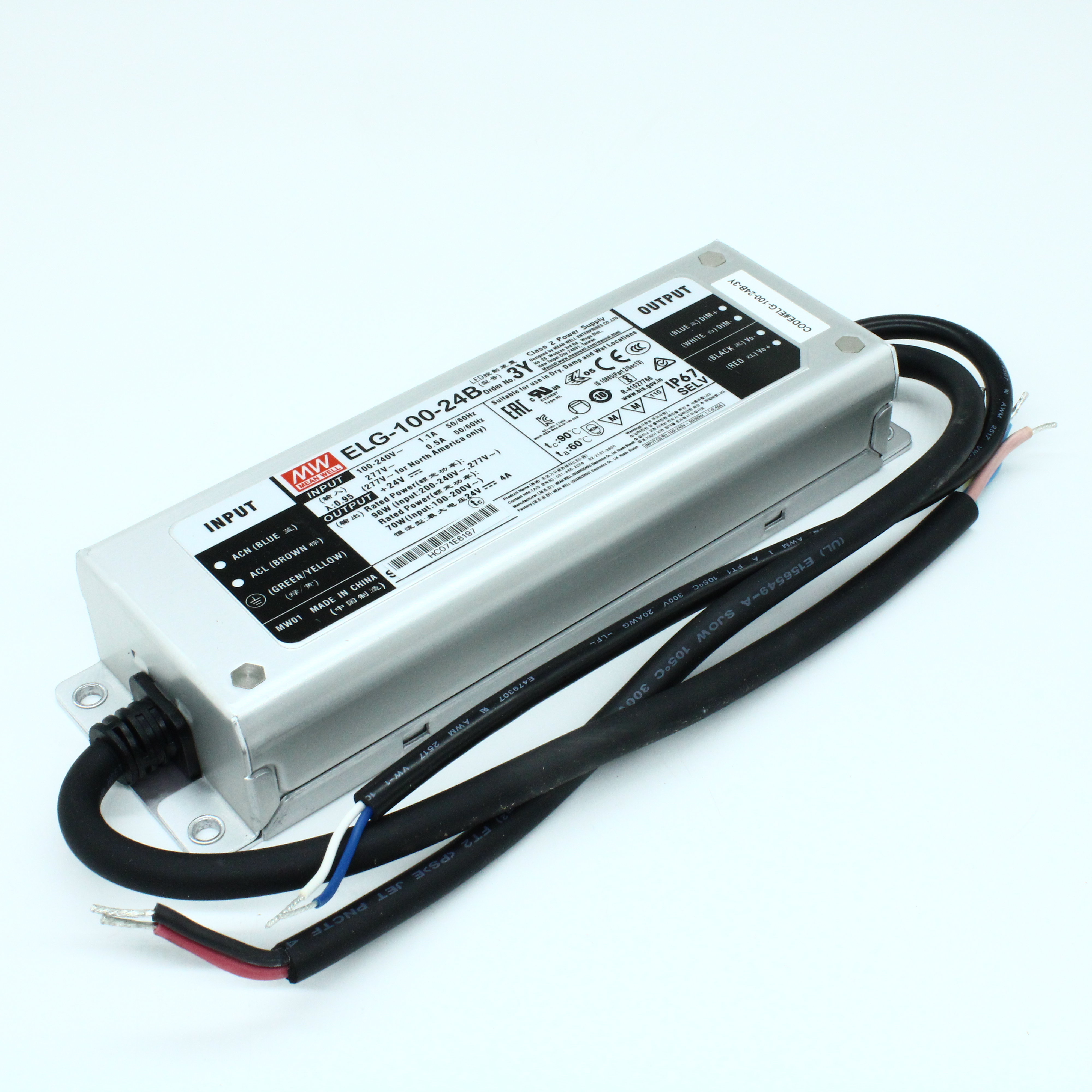 ELG-100-24B-3Y - Источник электропитания светодиодов класс IP67 96Вт 24В/4A стабилизация тока и напряжения димминг с проводом заземления