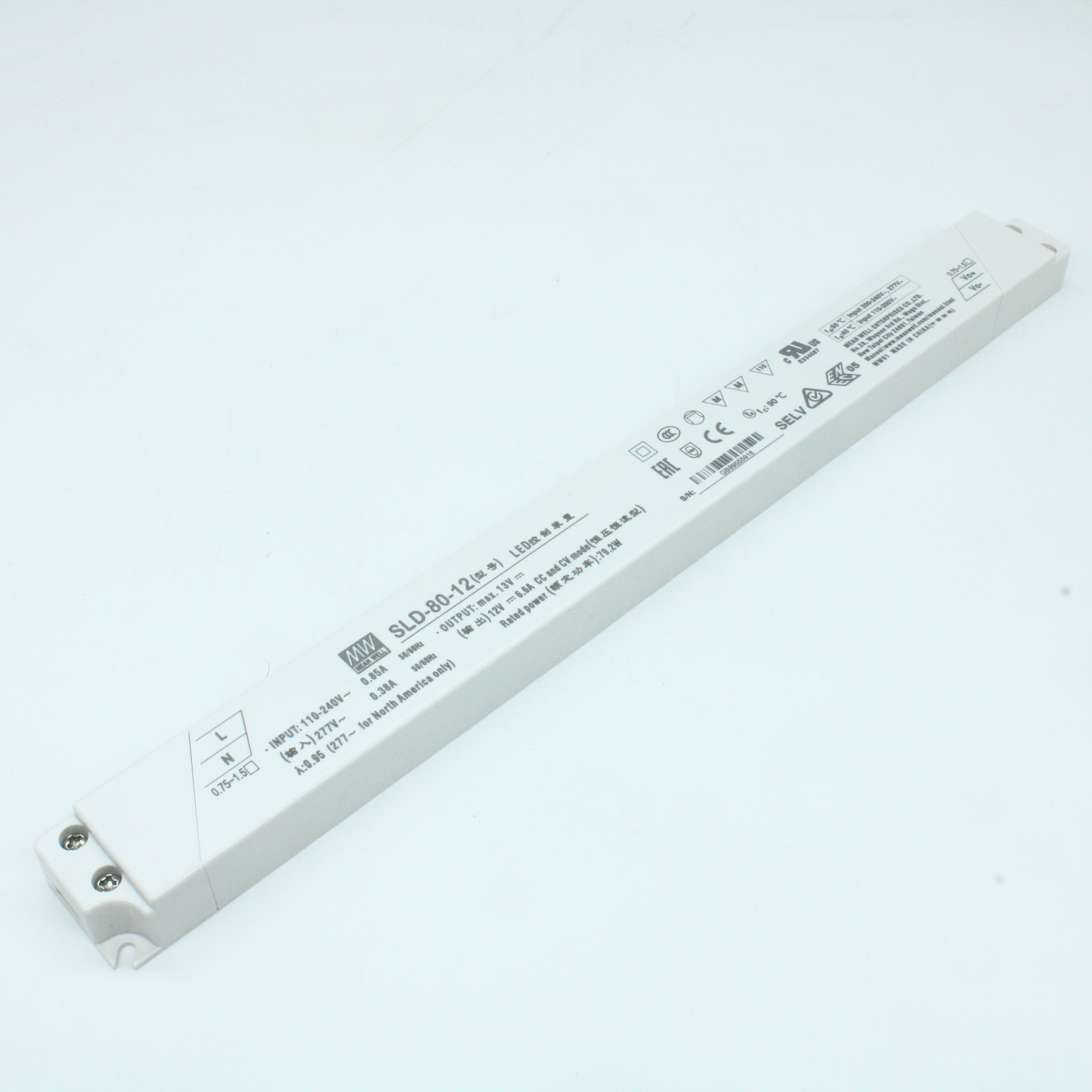 SLD-80-12 - AC-DC, 79.2Вт, вход 110…305В AC, 47…63Гц/155…431В DC, ККМ, 12В/6.6А, изоляция 3750В AC, в кожухе 320х30х16.8, -20…+90°С (корпус)
