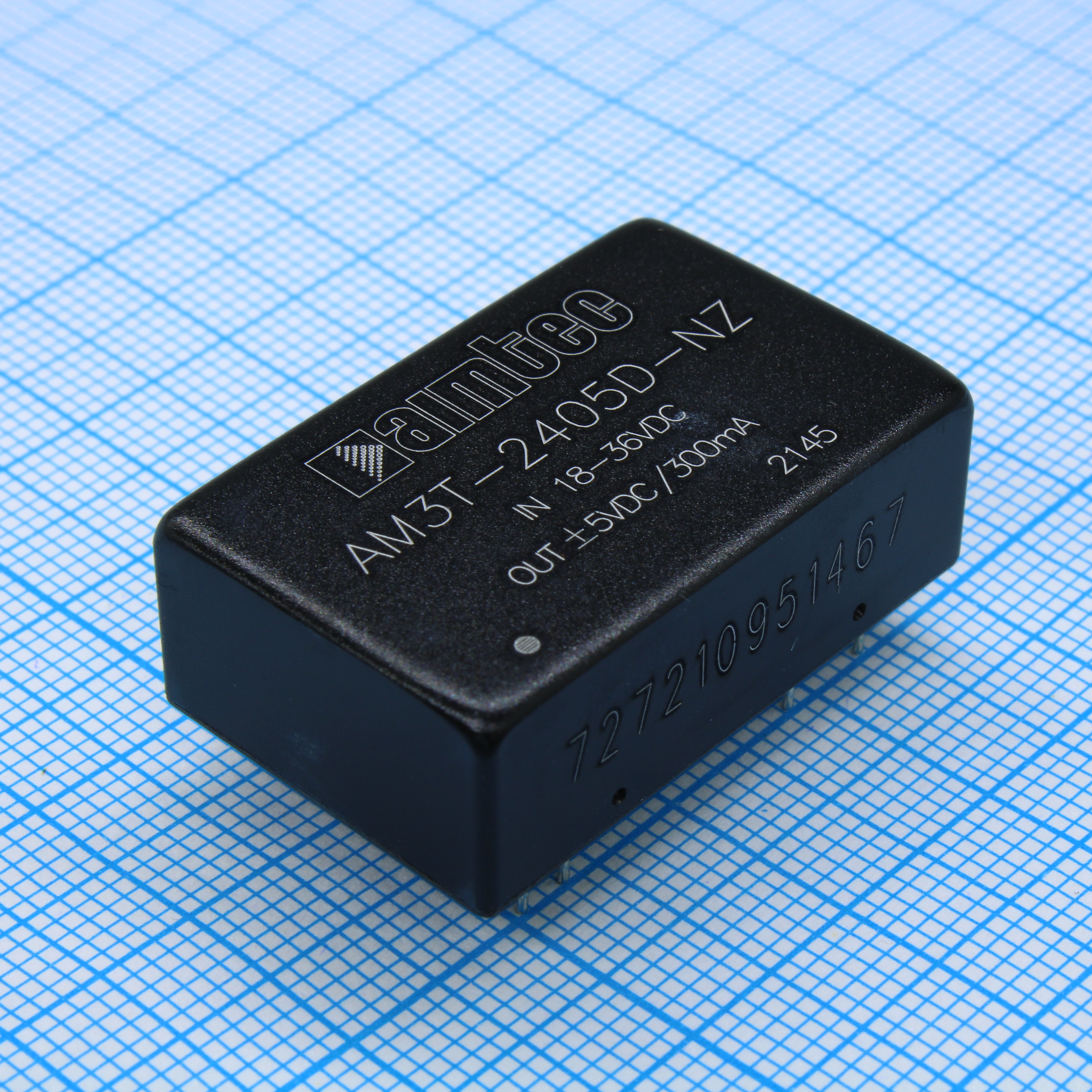 AM3T-2405D-NZ - DC/DC преобразователь 3 Вт вход 18В...36В выход ±5В ±0.3А -40...85°C, дерейтинг при 85°C1500VDC 1500VDC MTBF 1000000 часов КПД 82% ёмк. нагрузка макс.±2200 мкФ корпус DIP24, алюминий установка на печатную плату 20x32x10.8 мм