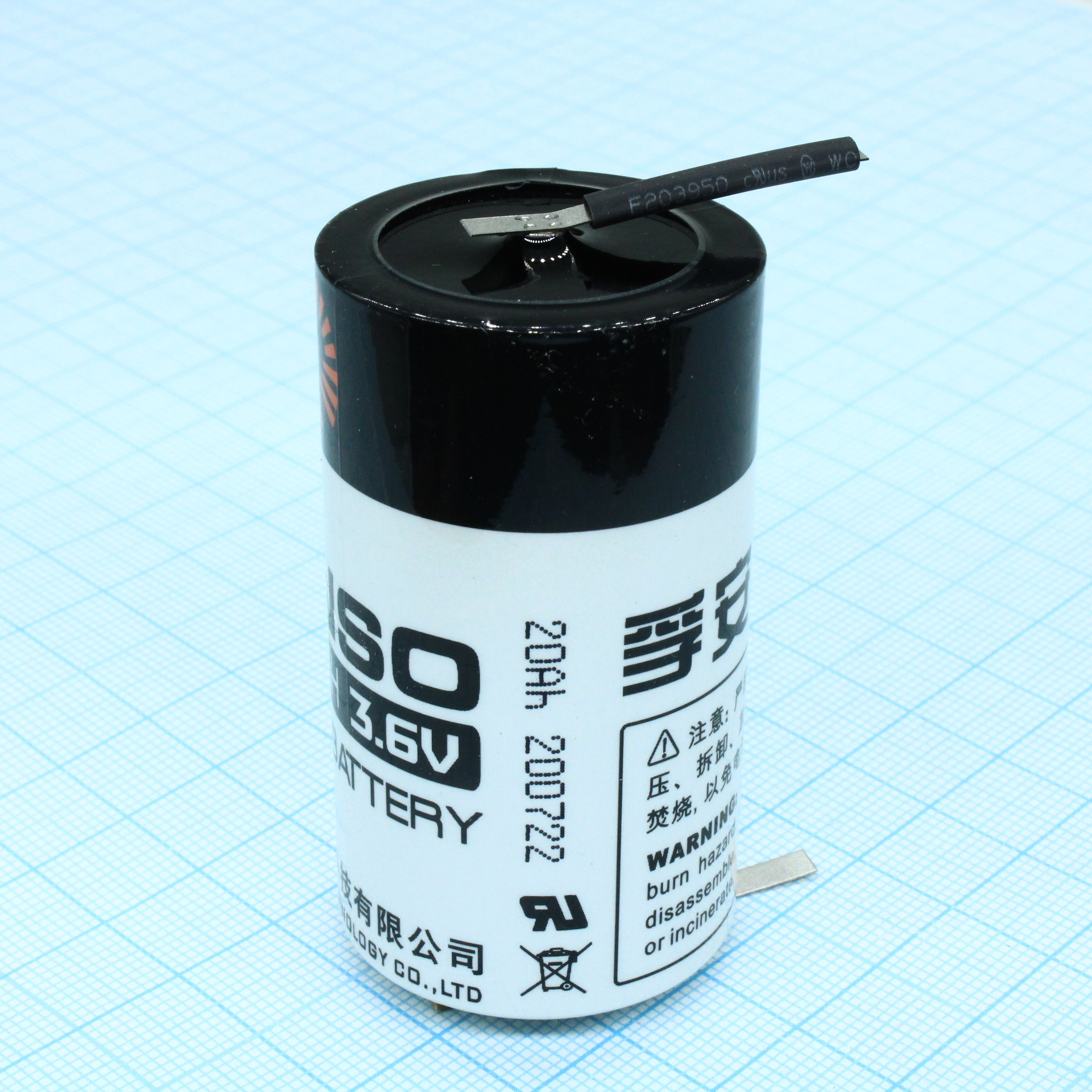 Li, SOCl2 батарея типоразмера D, 3.6 В, 19 Ач, плоские радиальные выводы, -55...85 °C