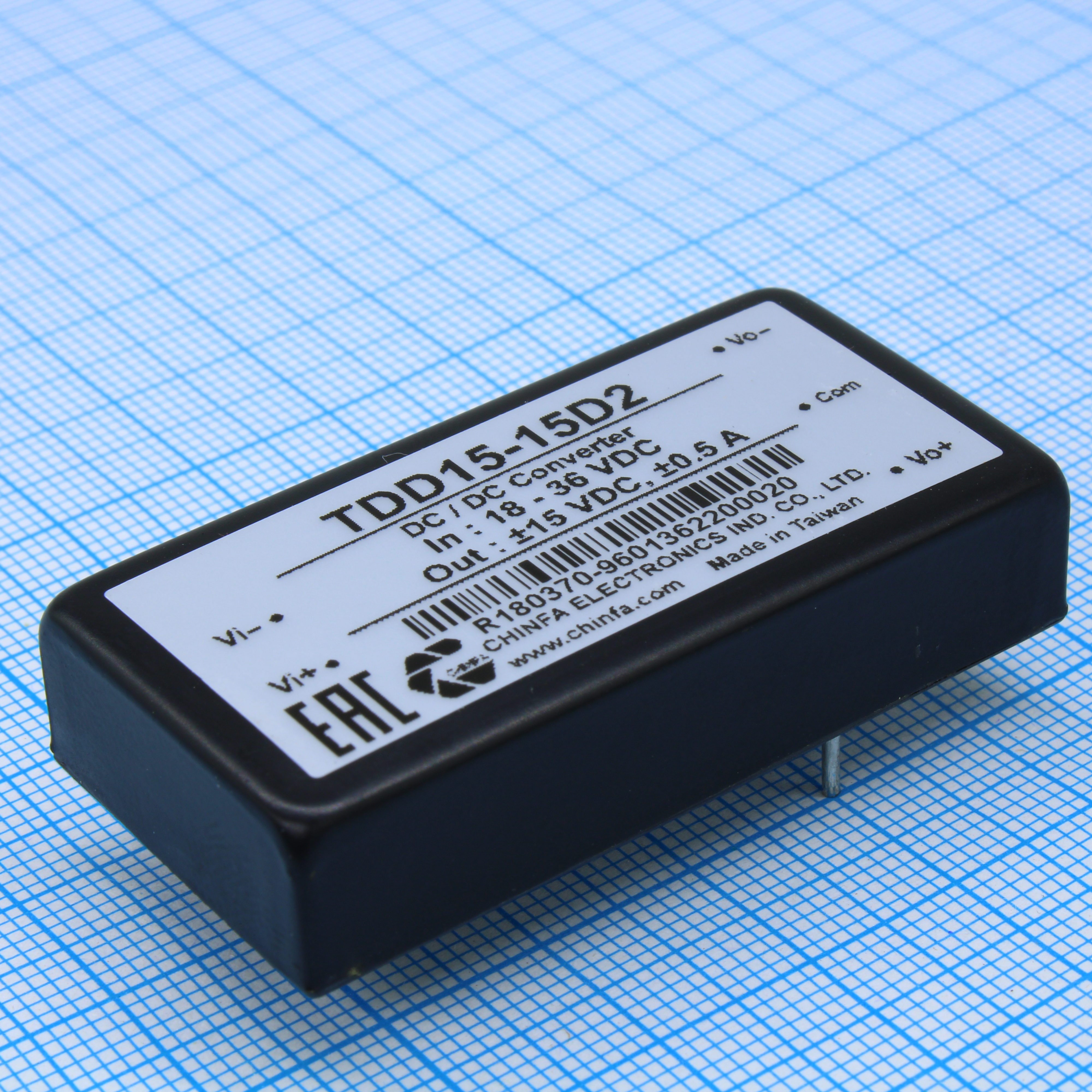 TDD15-15D2 - Преобразователь DC/DC 15Вт вход 18...36В выход ±15В/±500мА, изоляция 1500В DC, 2"x1" (50.8х25.4х10.2мм), -25°С…+60°С