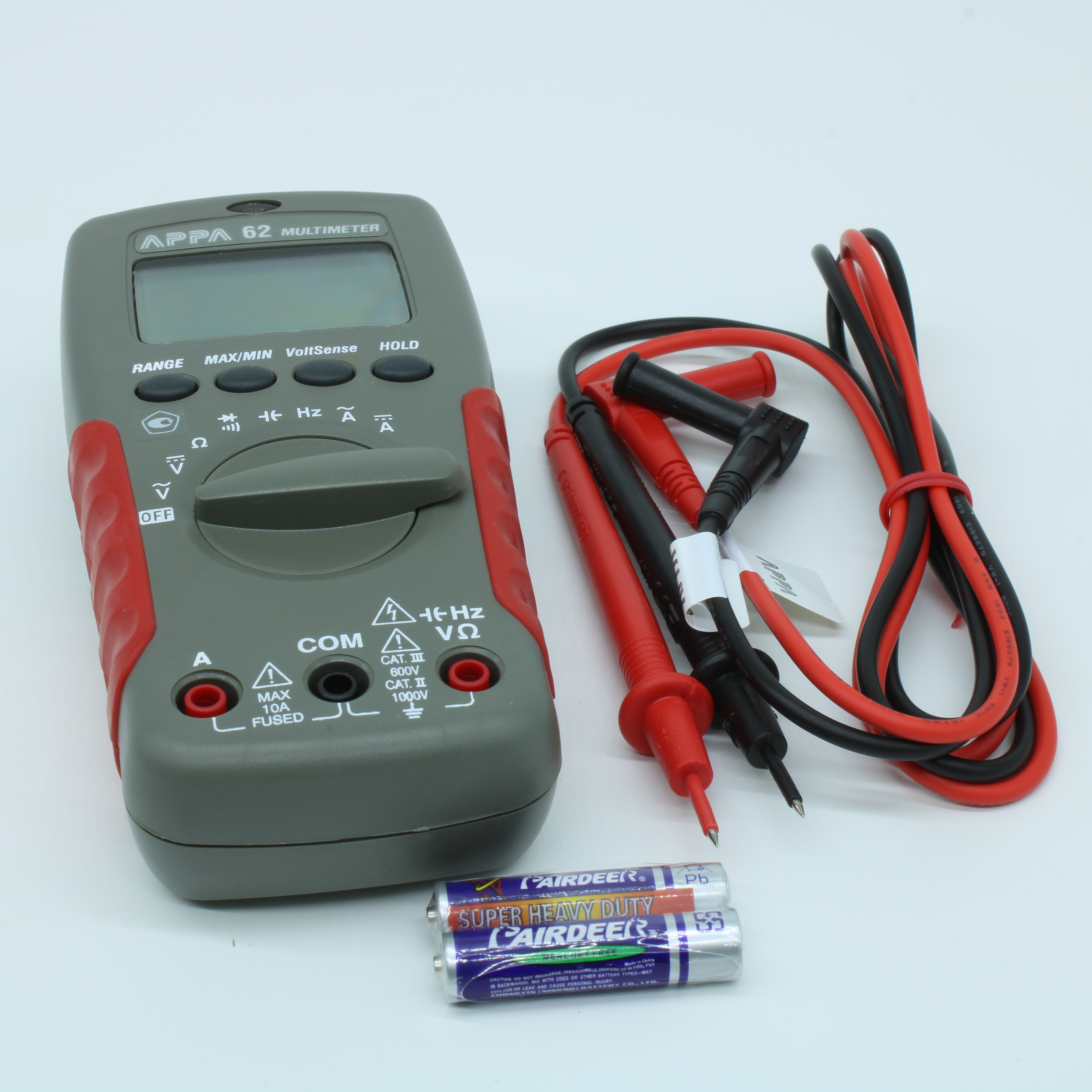 APPA 62 - (аналог АРРА 61), дополнительный вход: I пост 1мА…10А, (погрешность ± 0,5 % (базовая)), I пер 1мА…10А (50-500Гц), R 0,1Ом...20МОм, прозвон цепи (до 200 Ом) и проверка диодов, емк 2нФ…2мкФ