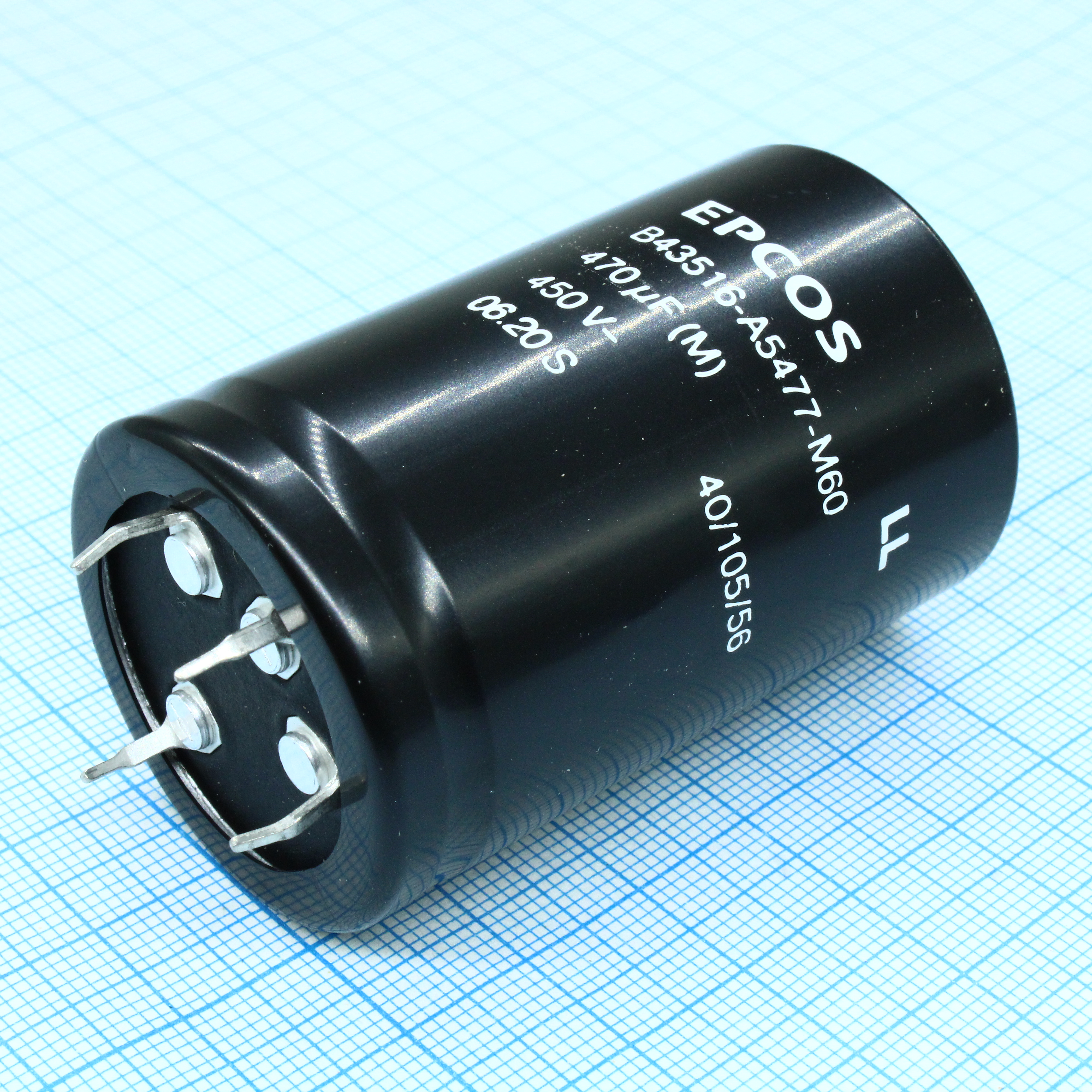B43516A5477M060 - Конденсатор алюминиевый электролитический 470мкФ 450В ±20% (35 X 55мм) защелкиваемые выводы 10мм 0.3Ом 2300мА 3000час 105°С 4 вывода россыпь