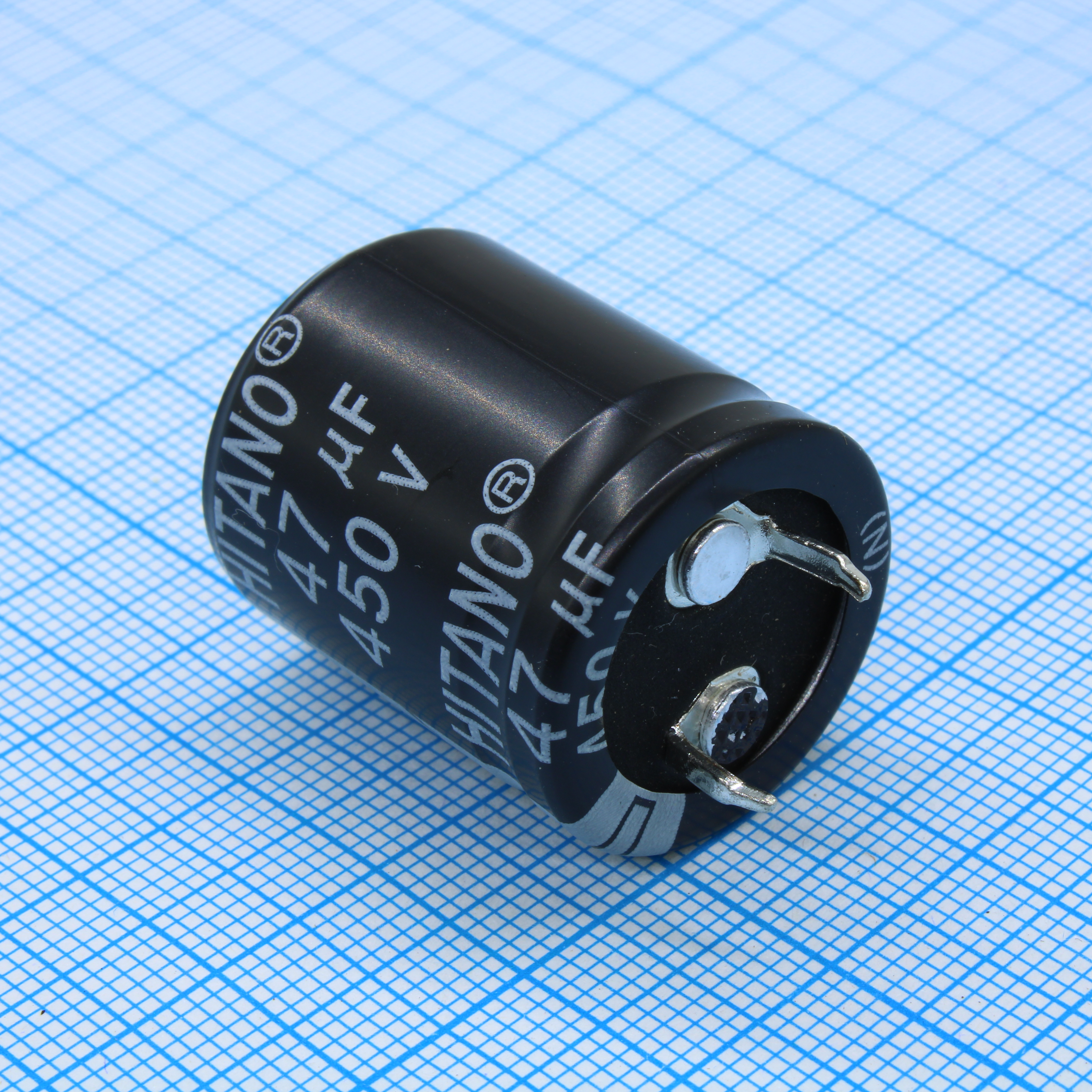 Конденсатор алюминиевый электролитический 47мкФ 450В ±20% (22 X 25мм) защелкиваемые выводы 10мм 360мА 2000час 85°С россыпь