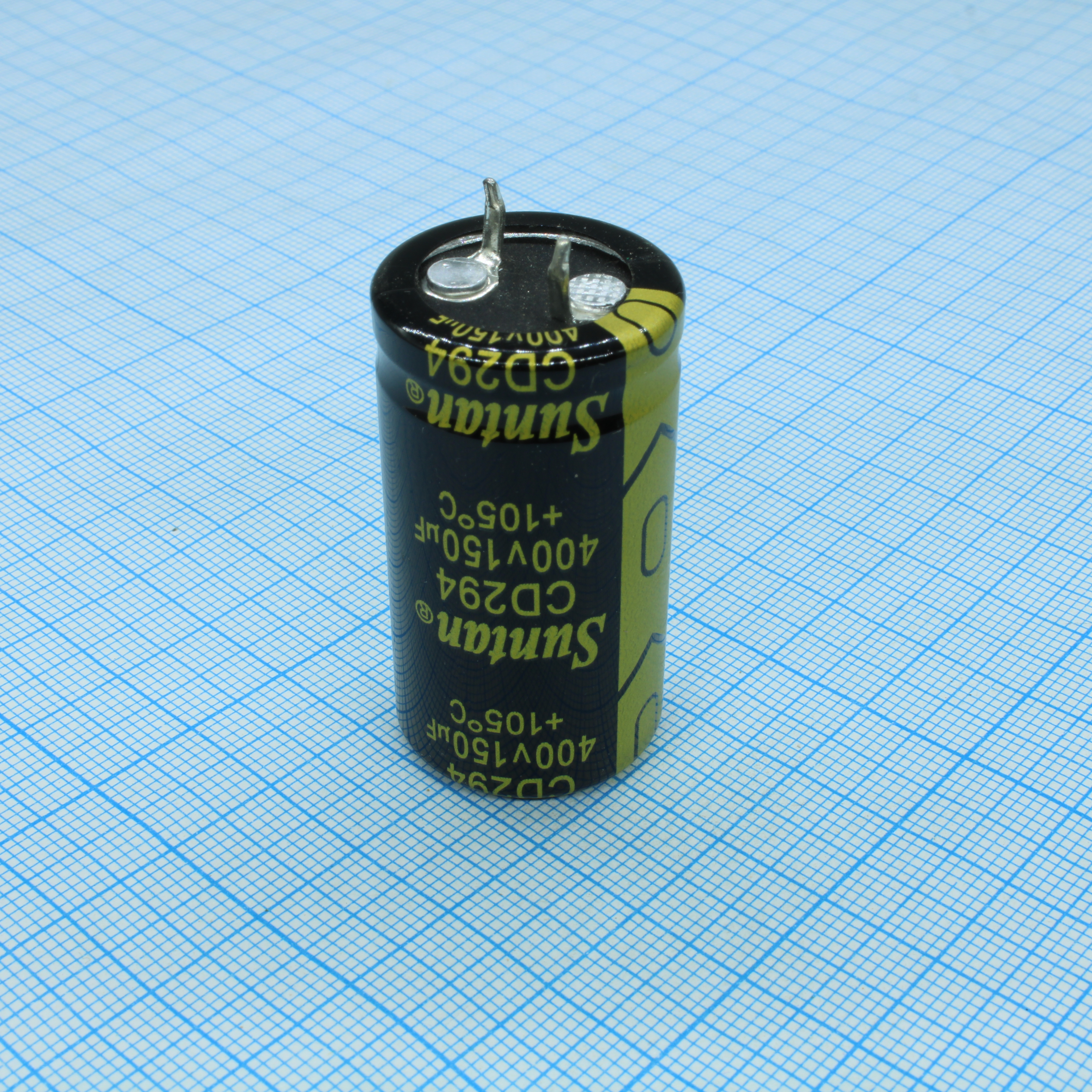 Конденсатор алюминиевый электролитический с защёлкиваемыми выводами 150мкФ 400В ±20% (22 X 40мм) шаг 10мм 2000час 105°С россыпь