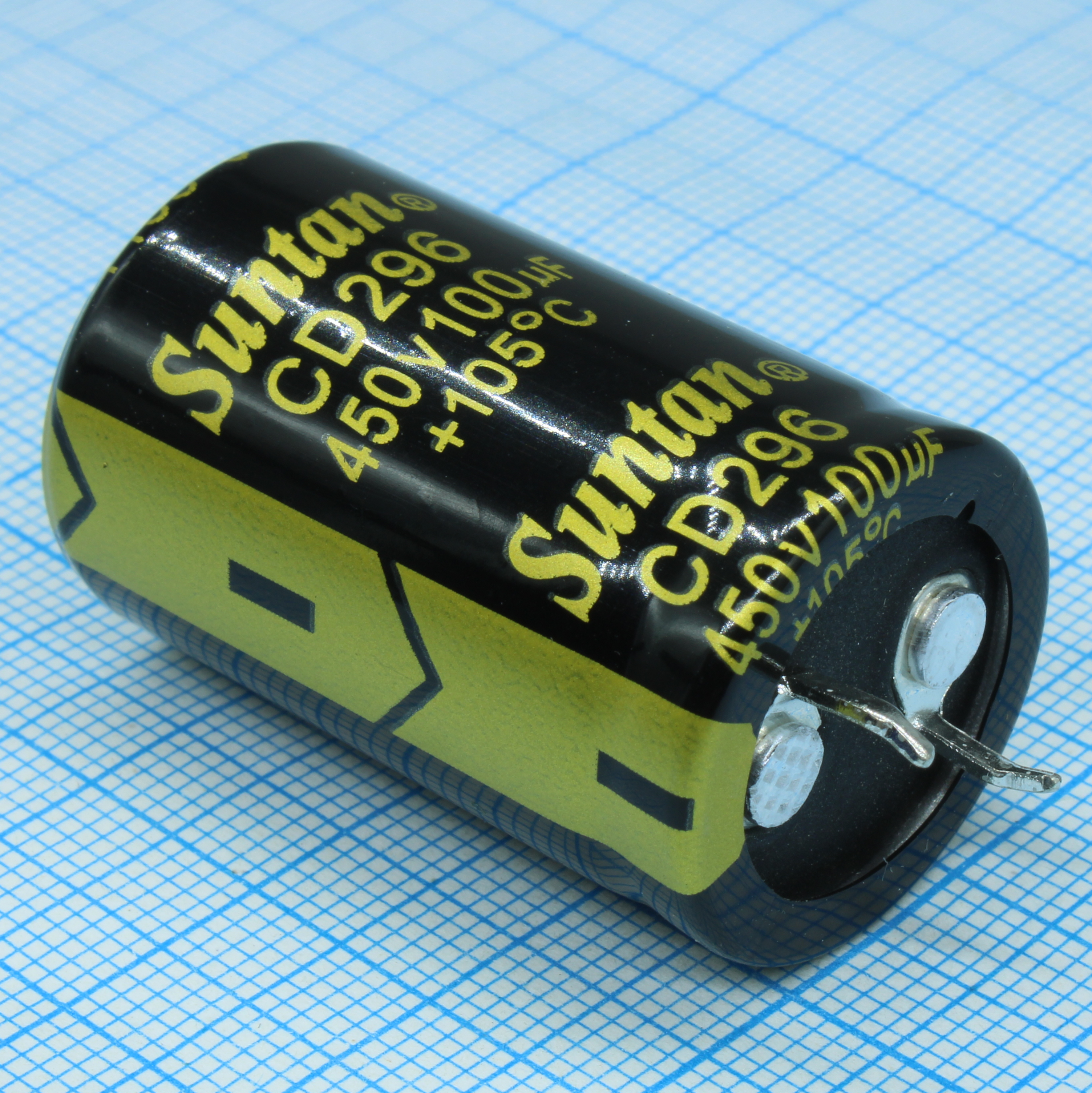 Конденсатор алюминиевый электролитический 450В 100мкФ ±20% 22*35 P:10мм защелкиваемые выводы 3000ч -25...105°С