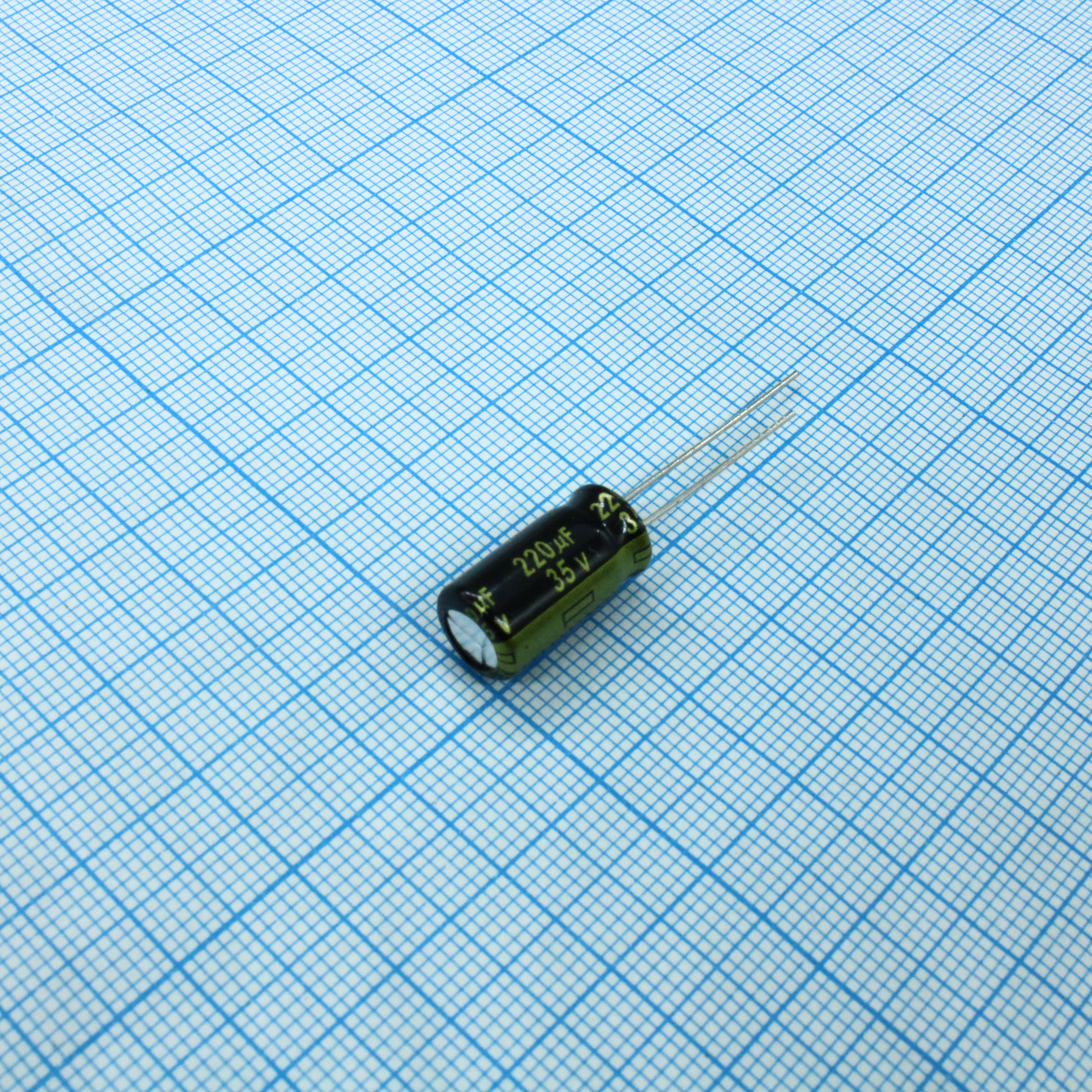 Конденсатор алюминиевый электролитический 220мкФ 35В 20% (8 X 15мм) радиальные выводы 3.5мм 1240мА 3000час 105°С Россыпь