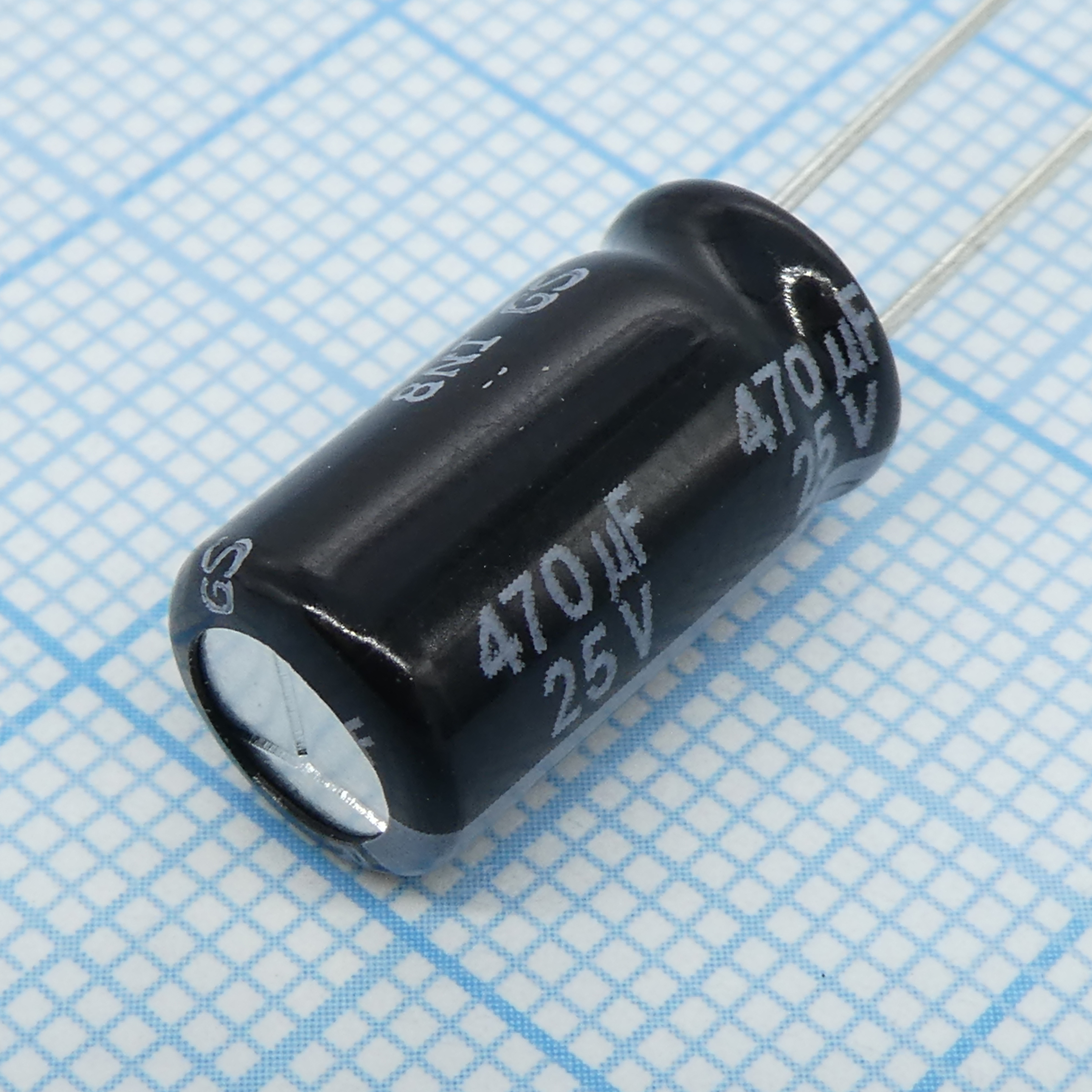 Конденсатор алюминиевый электролитический 470мкФ 25В 20% (8 X 15мм) радиальные выводы 3.5мм 1240мА 8000час 105°С Россыпь