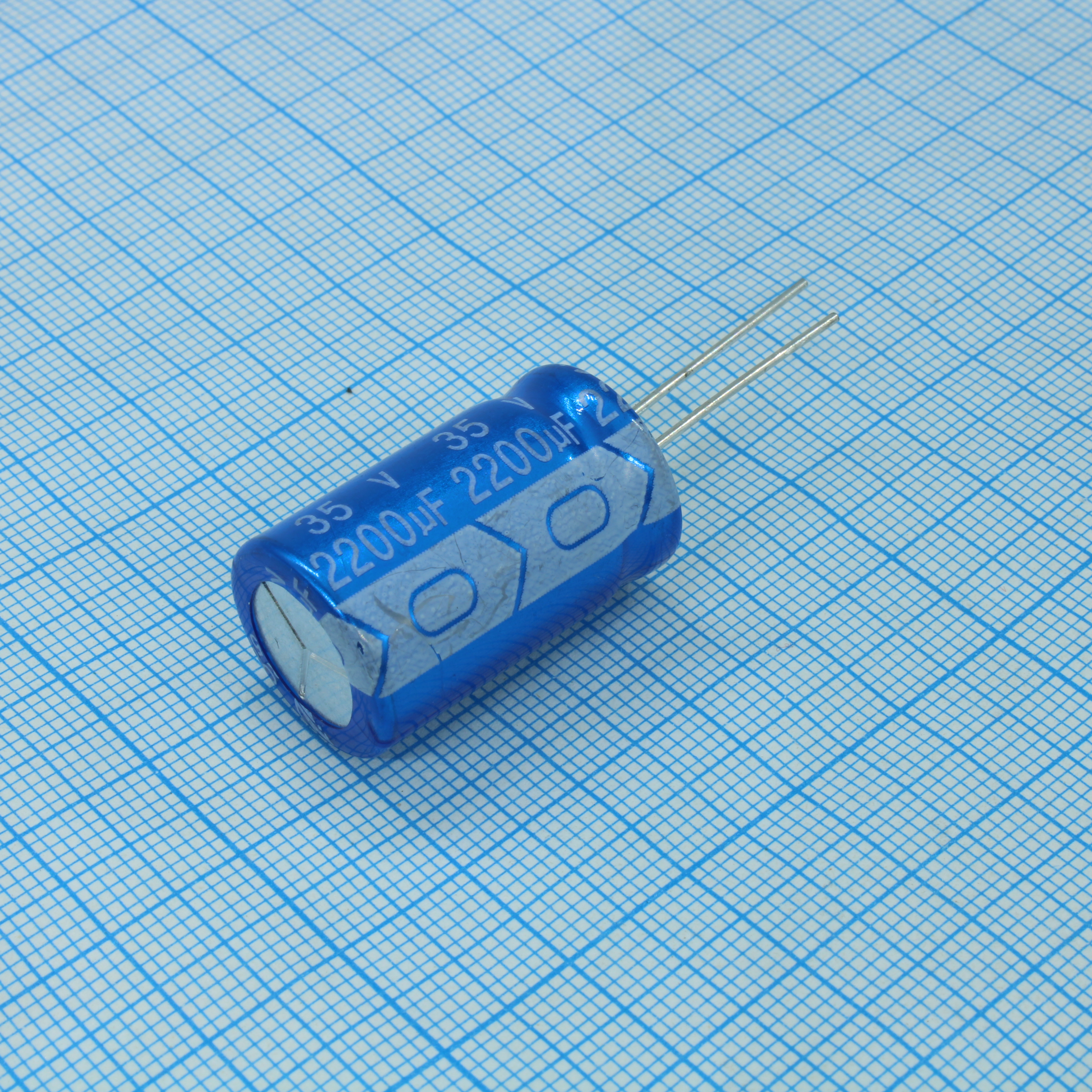 Конденсатор алюминиевый электролитический 2200мкФ 35В ±20% (16х26мм) радиальный 7.5мм 0.018Ом 2820мА 2000час 105°C россыпь