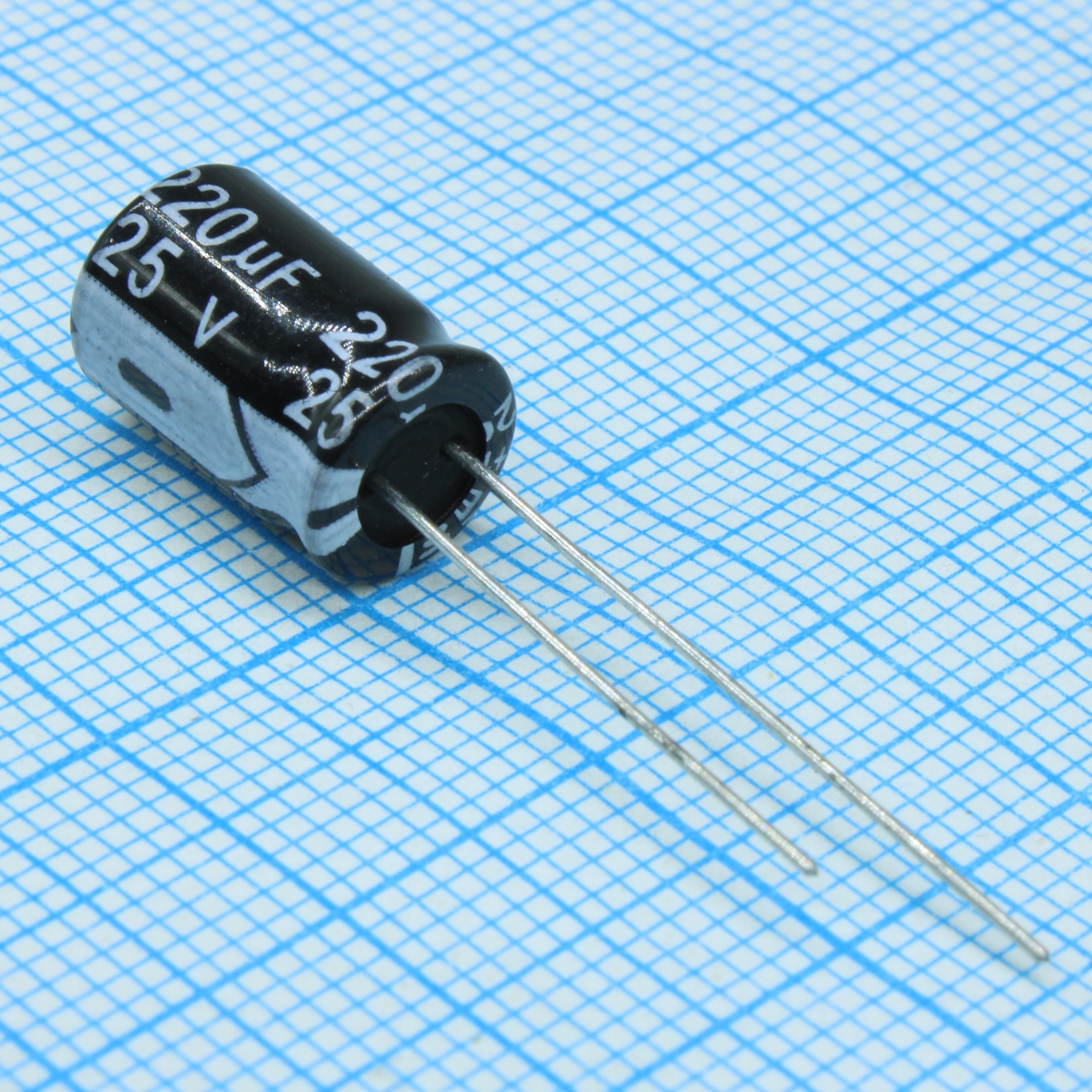 Конденсатор алюминиевый электролитический 220мкФ 25В ±20% (8х12мм) радиальный 3.5мм 2000часов 105°C