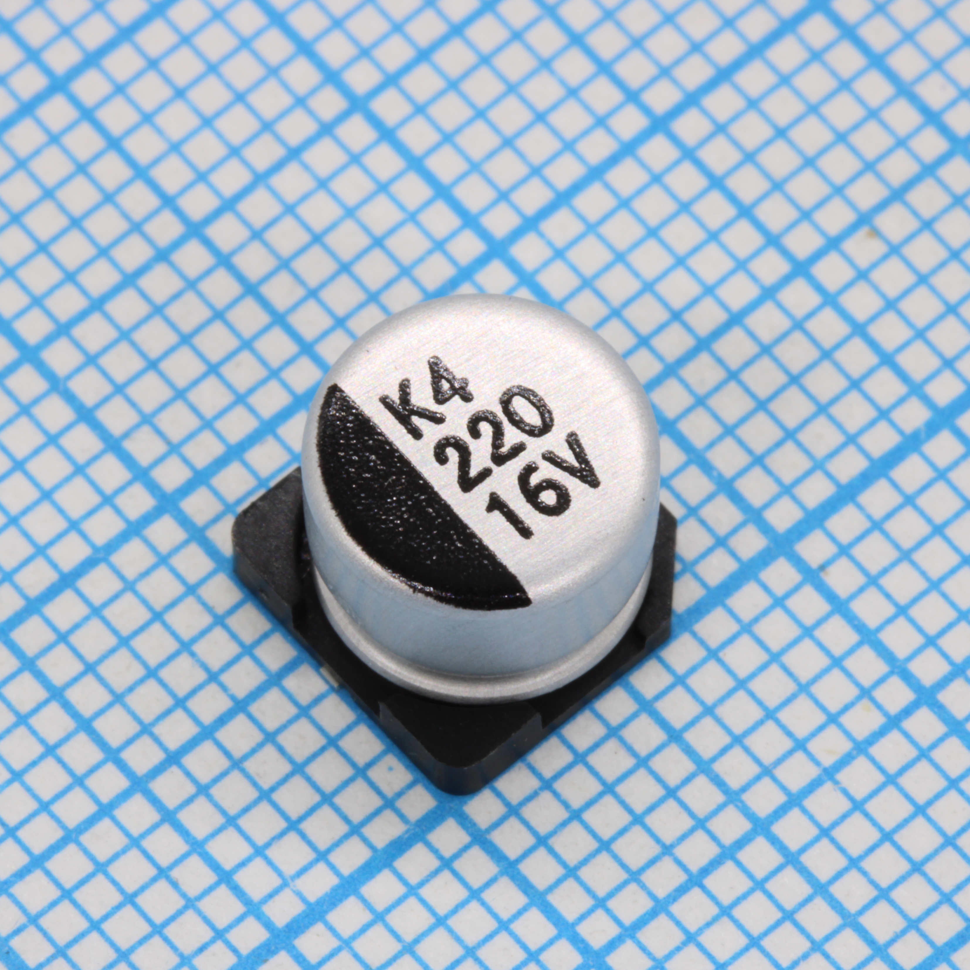 Конденсатор алюминиевый электролитический 220мкФ 16В ±20% (8х6.5мм) для поверхностного монтажа 2000час 105°С лента на катушке