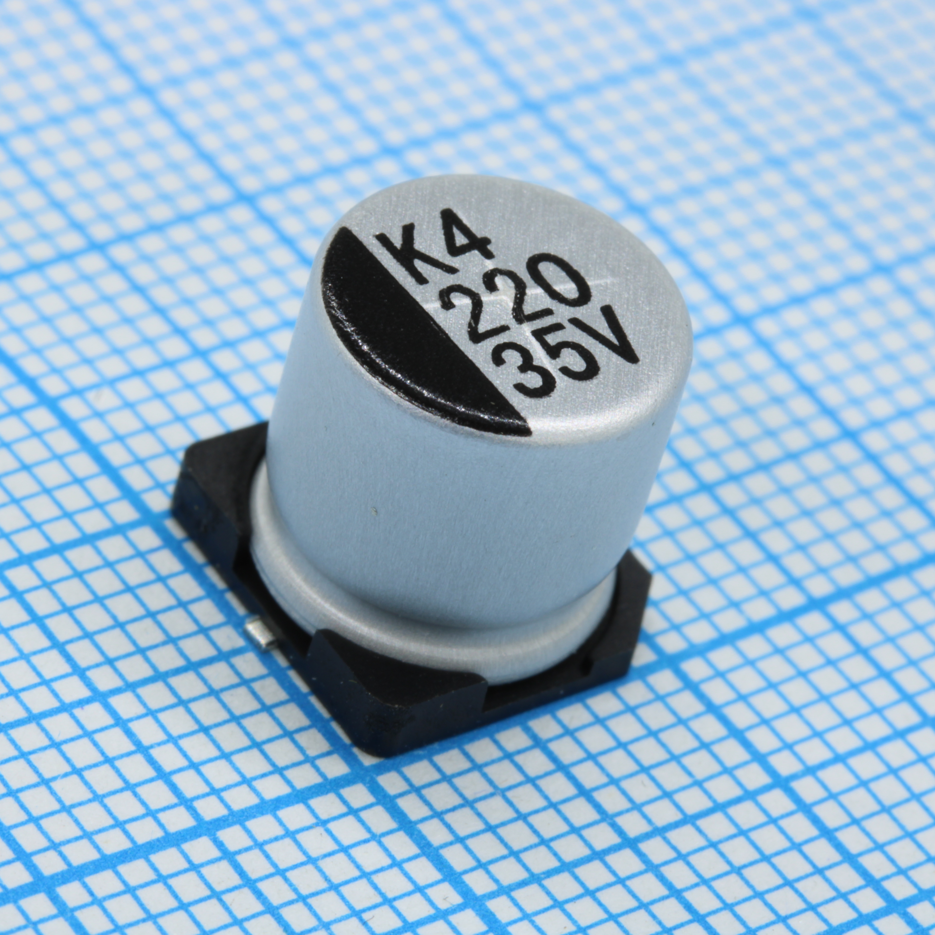 Конденсатор электролитический для поверхностного монтажа 35В 220мкФ ±20%, 450mA, 2000часов, 105С лента на катушке