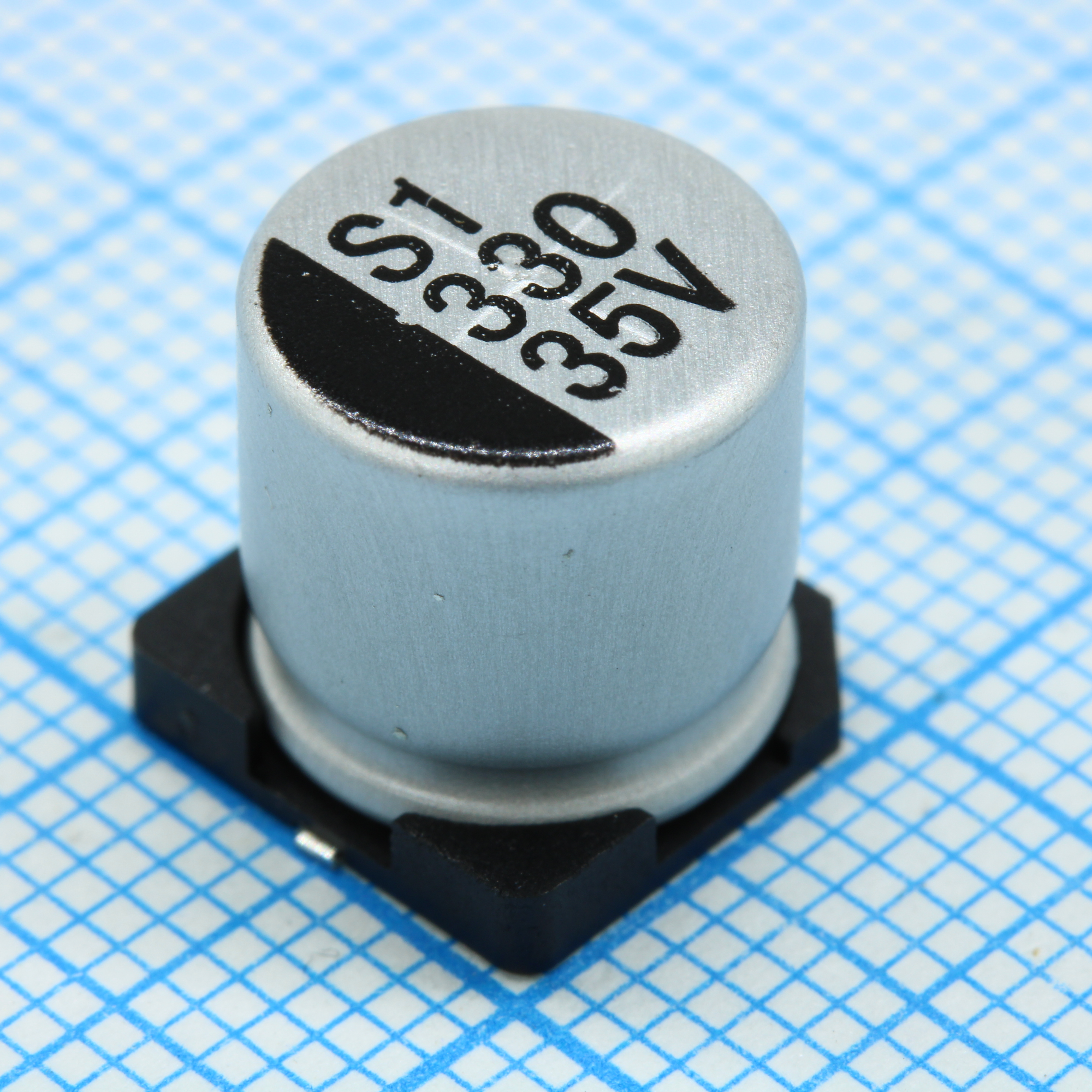Конденсатор алюминиевый электролитический 330мкФ 35В ±20% (8 X 10мм) для поверхностного монтажа 2000час 105°С лента на катушке