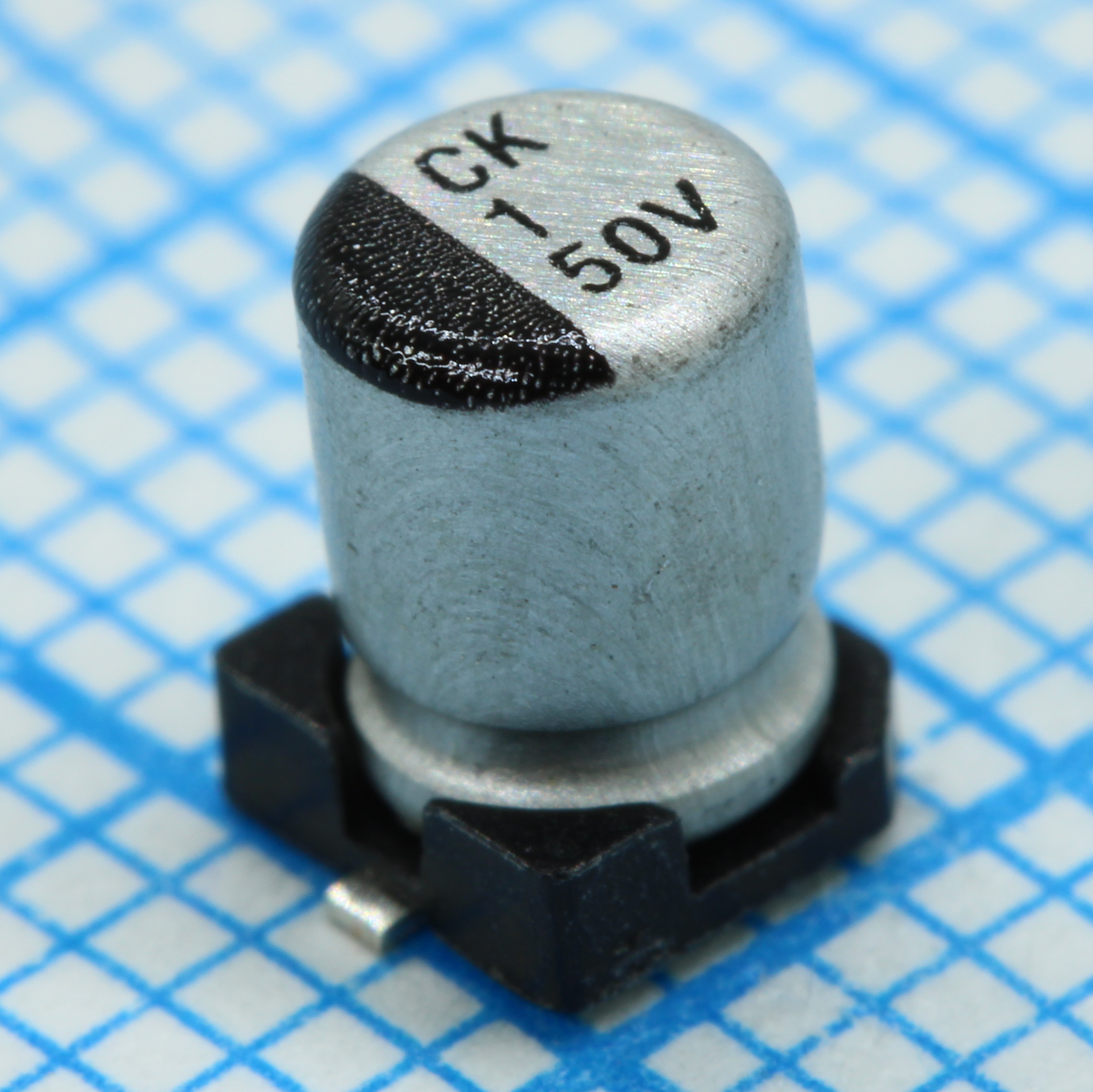 Конденсатор алюминиевый электролитический 1мкФ 50В ±20% (4х5.4мм) для поверхностного монтажа 7мА 1000час 105°С стандартный с расширенным температурным диапазоном