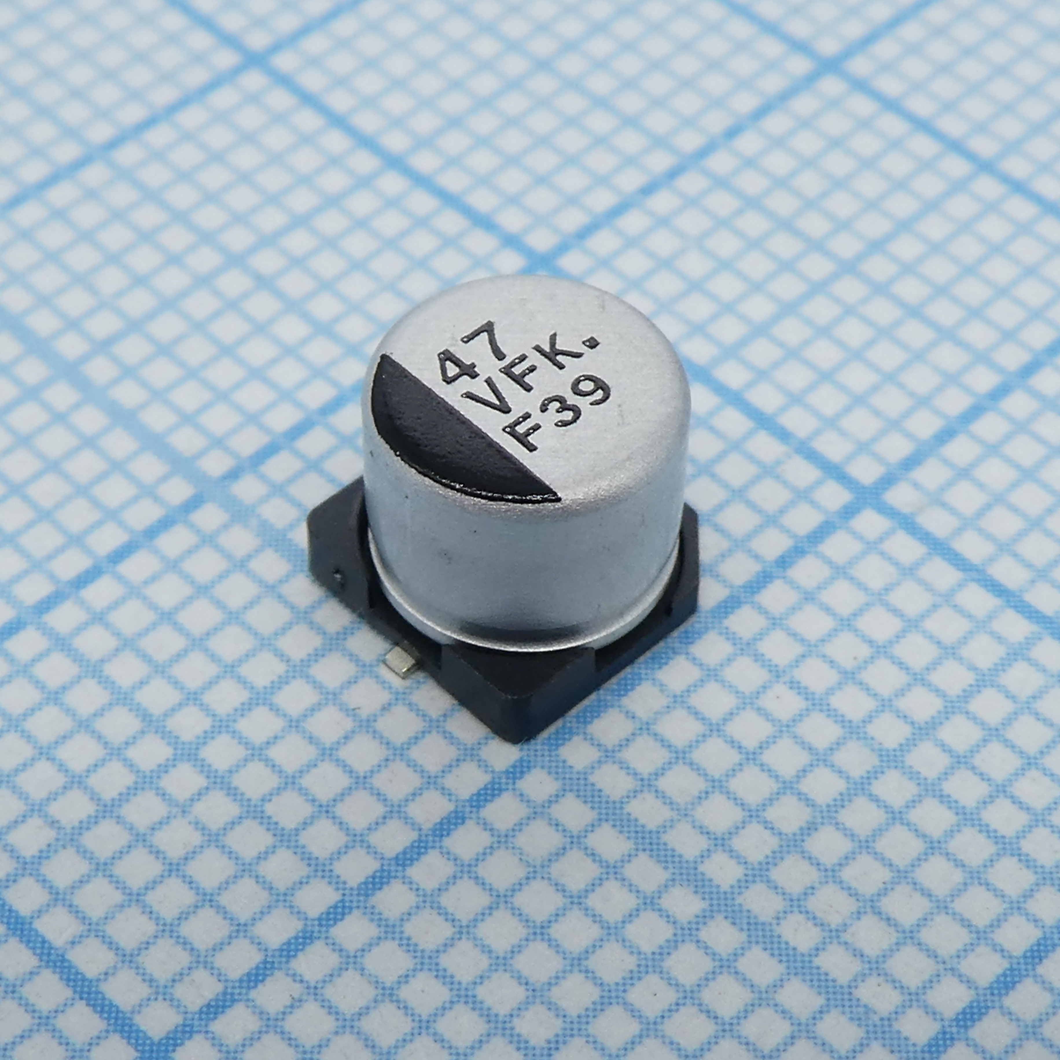 Конденсатор электролитический низкоимпедансный для поверхностного монтажа 35В 47мкФ ±20%, 240mA, 2000часов, 6.3*5.8