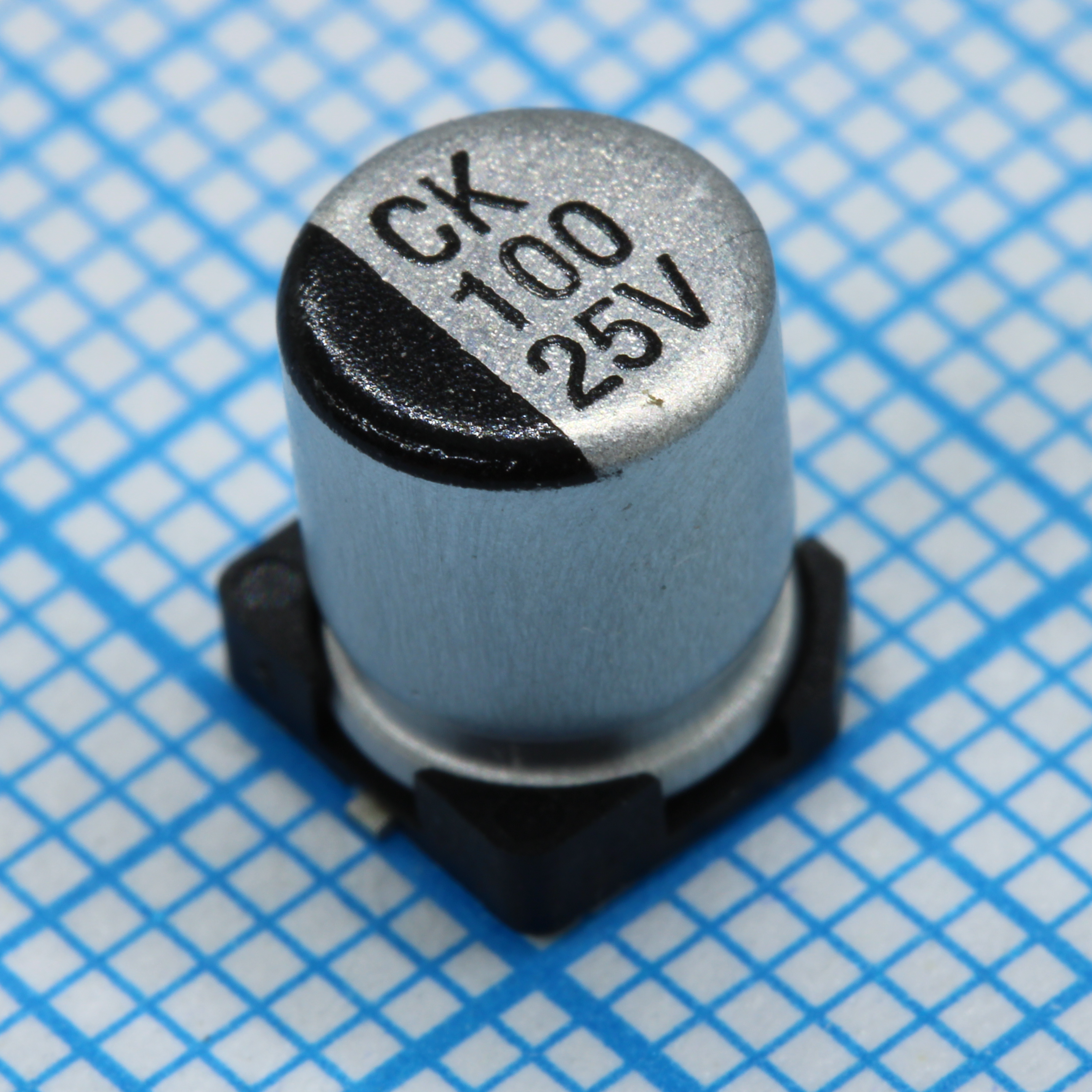 JCK1E101M063077 - Конденсатор алюминиевый электролитический 100мкФ 25В ±20% (6.3х7.7мм) SMD 91мА 2000часов 105°С лента на катушке
