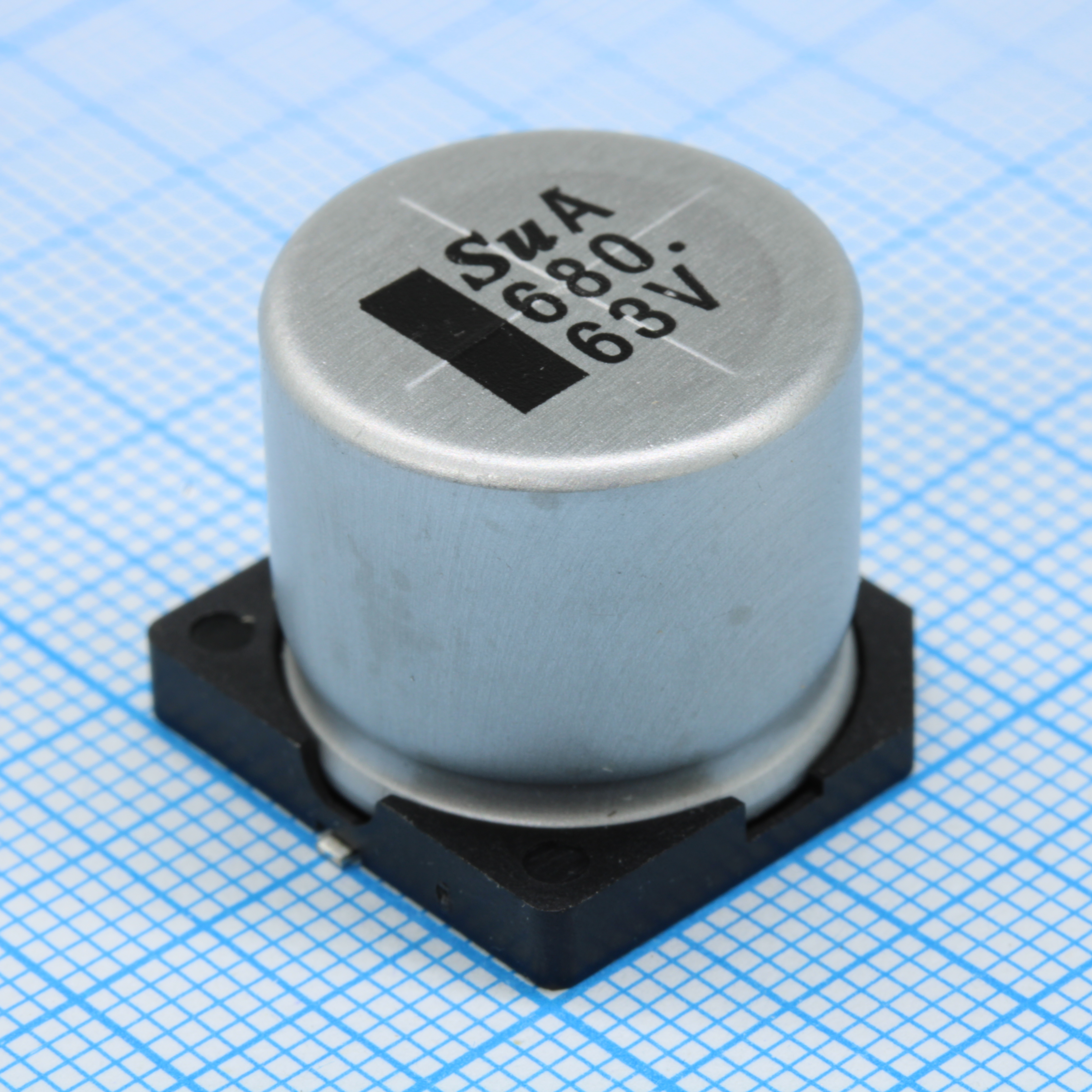 Конденсатор алюминиевый электролитический 680мкФ 63В ±20% (18 X 16.5мм) для поверхностного монтажа 0.08 Ом 1690мА 5000час 105°С автомобильного применения лента на катушке