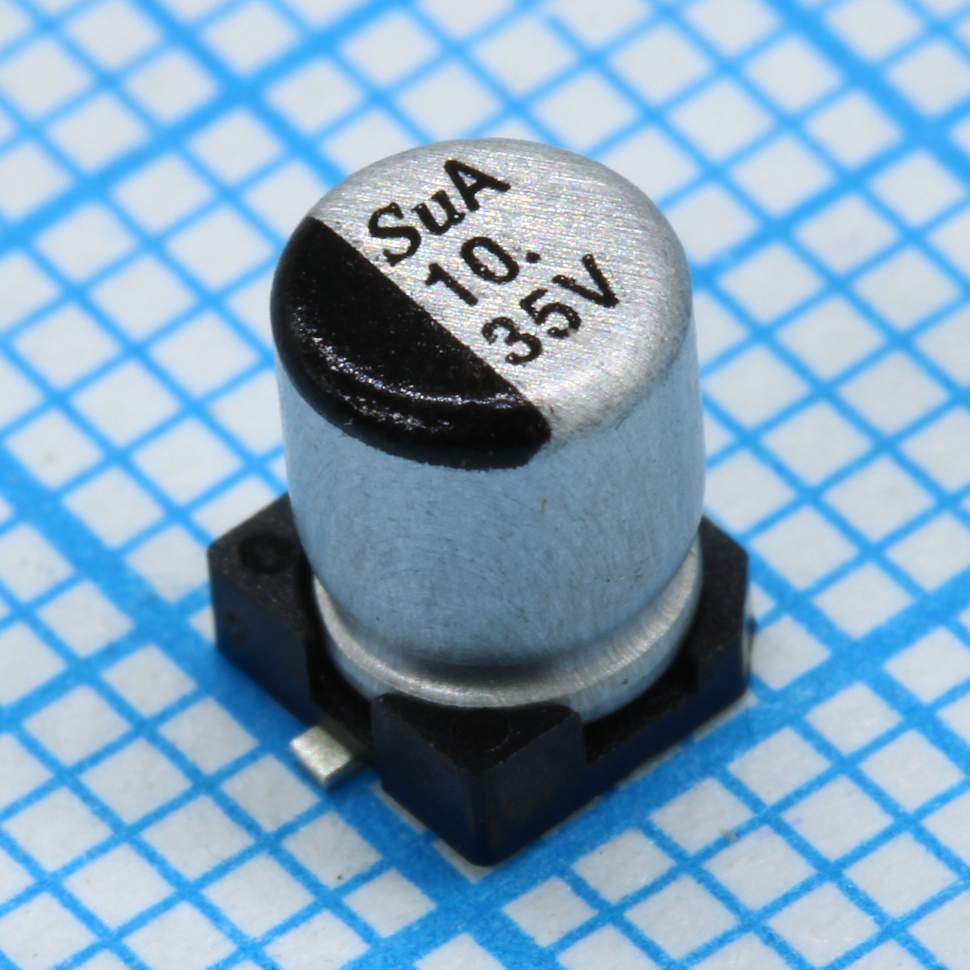 SMD Конденсатор алюминиевый электролитический 35В, 10мкФ ±20%, размер 4 X 5.8мм, 1.45 Ом, 80мА, 2000ч, 105С