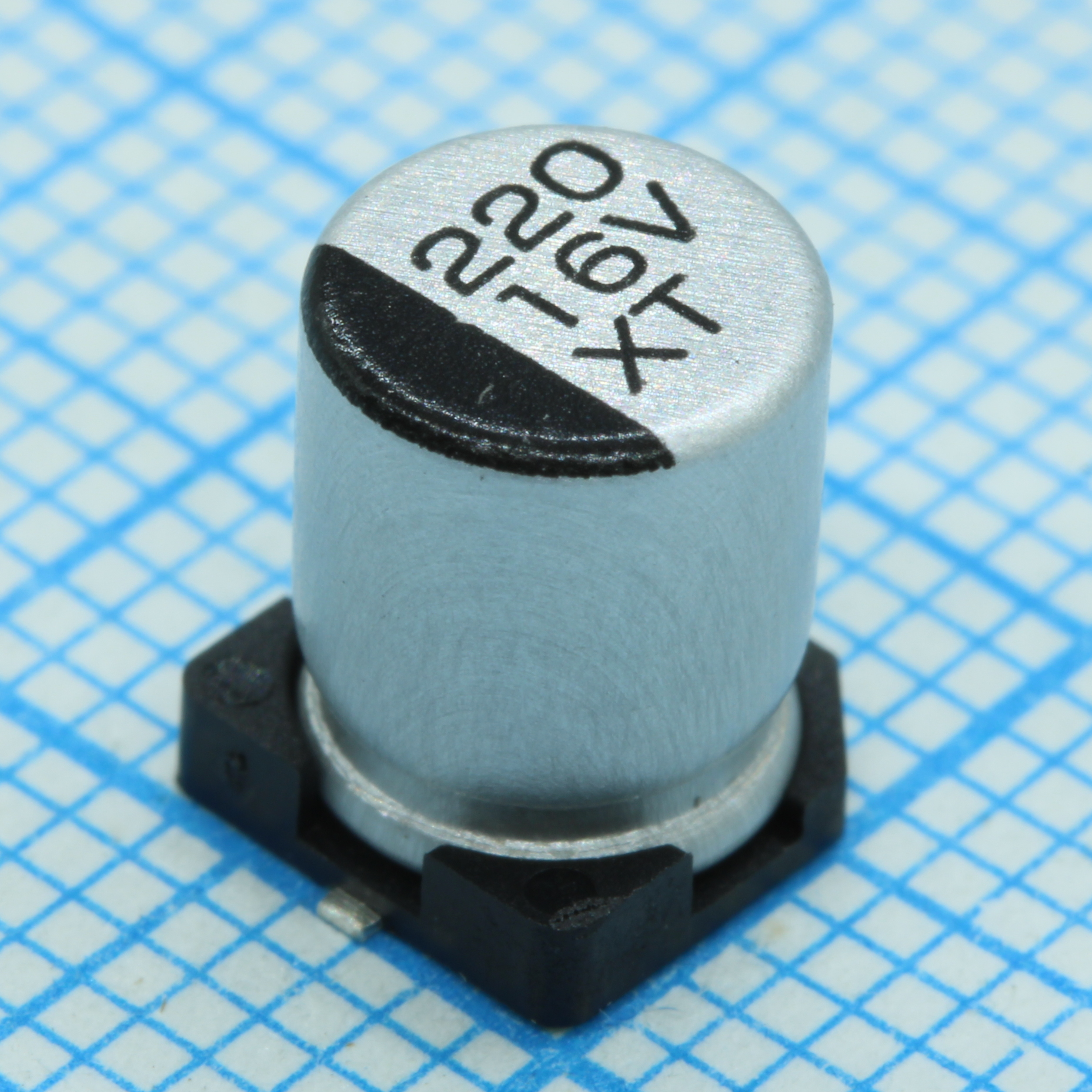 Конденсатор электролитический стандартный 25В 100мкФ ±20% (6.3 Х 7.7мм) для поверхностного монтажа 143мА 2000часов 85°C лента на катушке