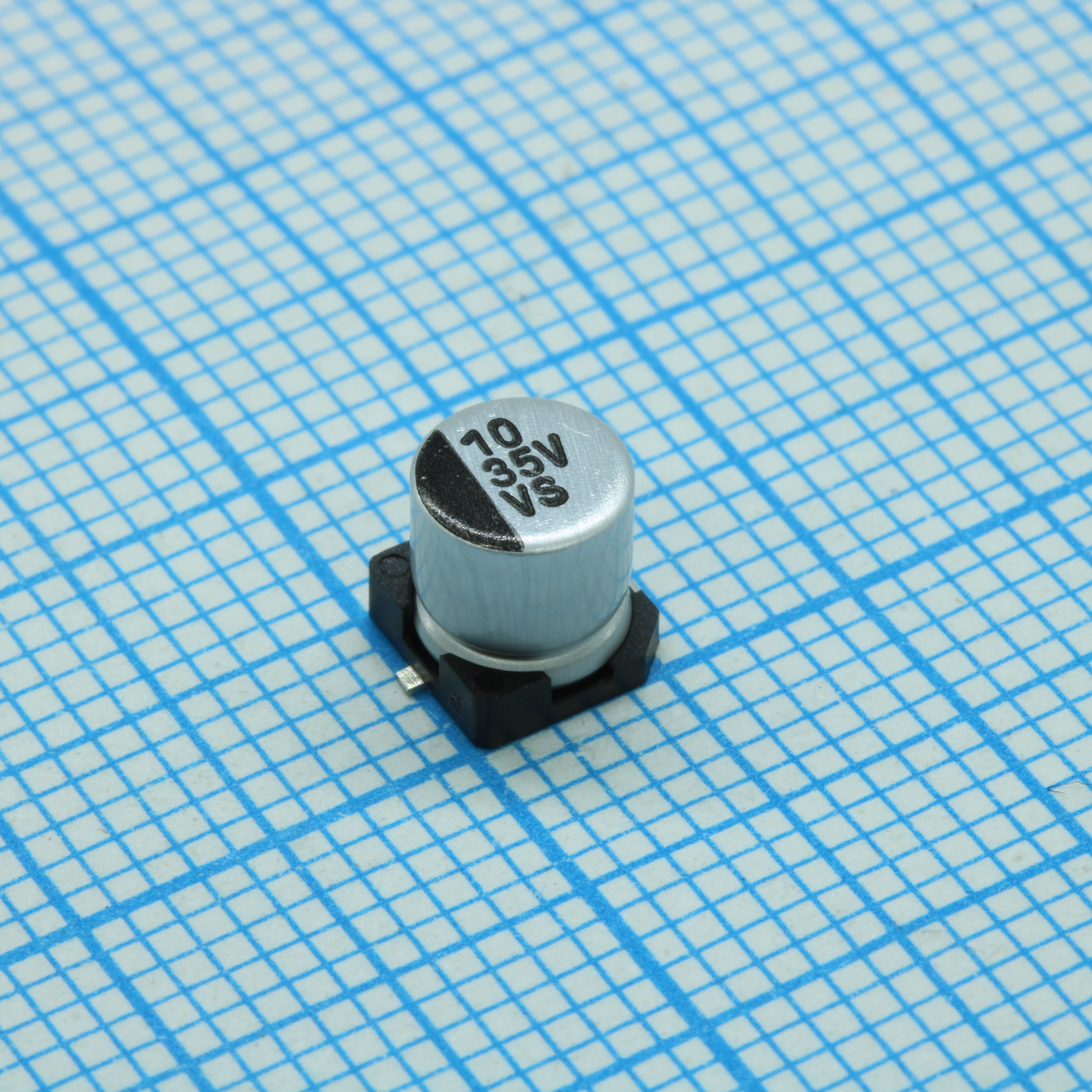 Конденсатор электролитический стандартный 10мкФ 20% 35В (5 Х 5.4мм) для поверхностного монтажа 41мА 2000часов 85°С лента на катушке