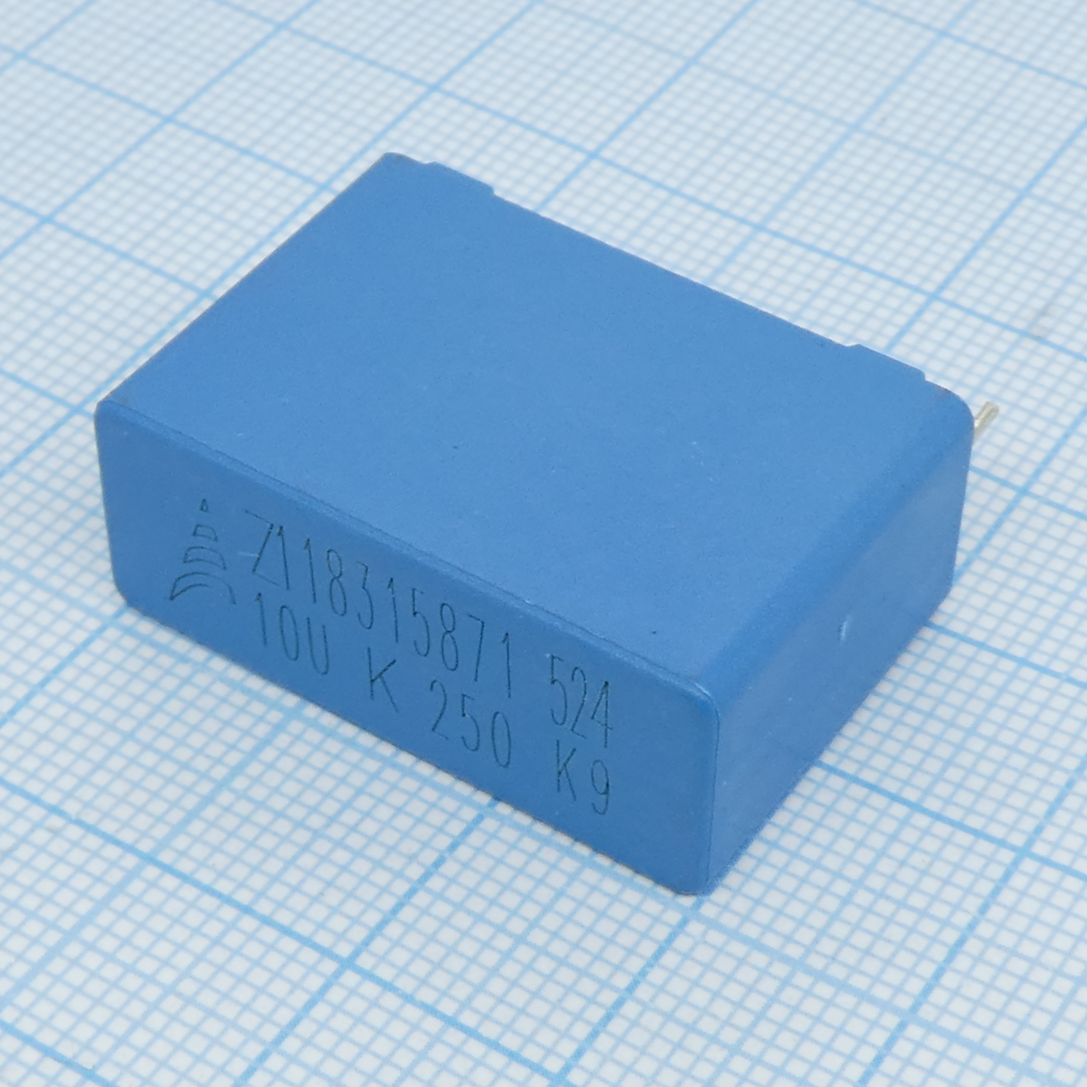 Конденсатор металлоплёночный полиэтилентерефталатный 10мкФ 250В ±10%( 31.5х12.5х21.5мм) шаг выводов 27.5мм 125°С автомобильного применения лента на катушке