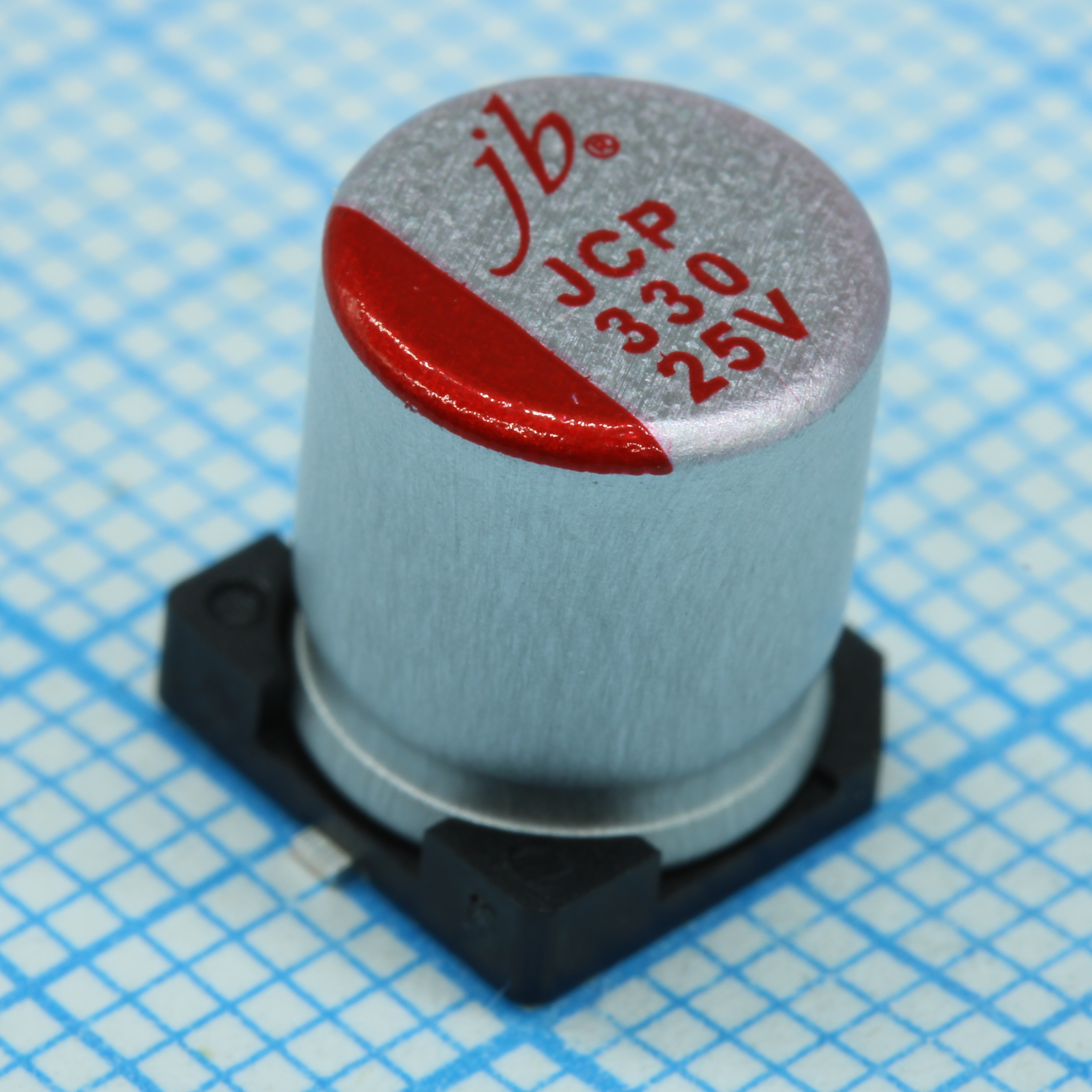 JCP1E331M080090 - Полимерный алюминиевый конденсатор 330мкФ 25В ±20% (8х9мм) для поверхностного монтажа 0.045Ом 3500мА 2000час 105°C лента на катушке