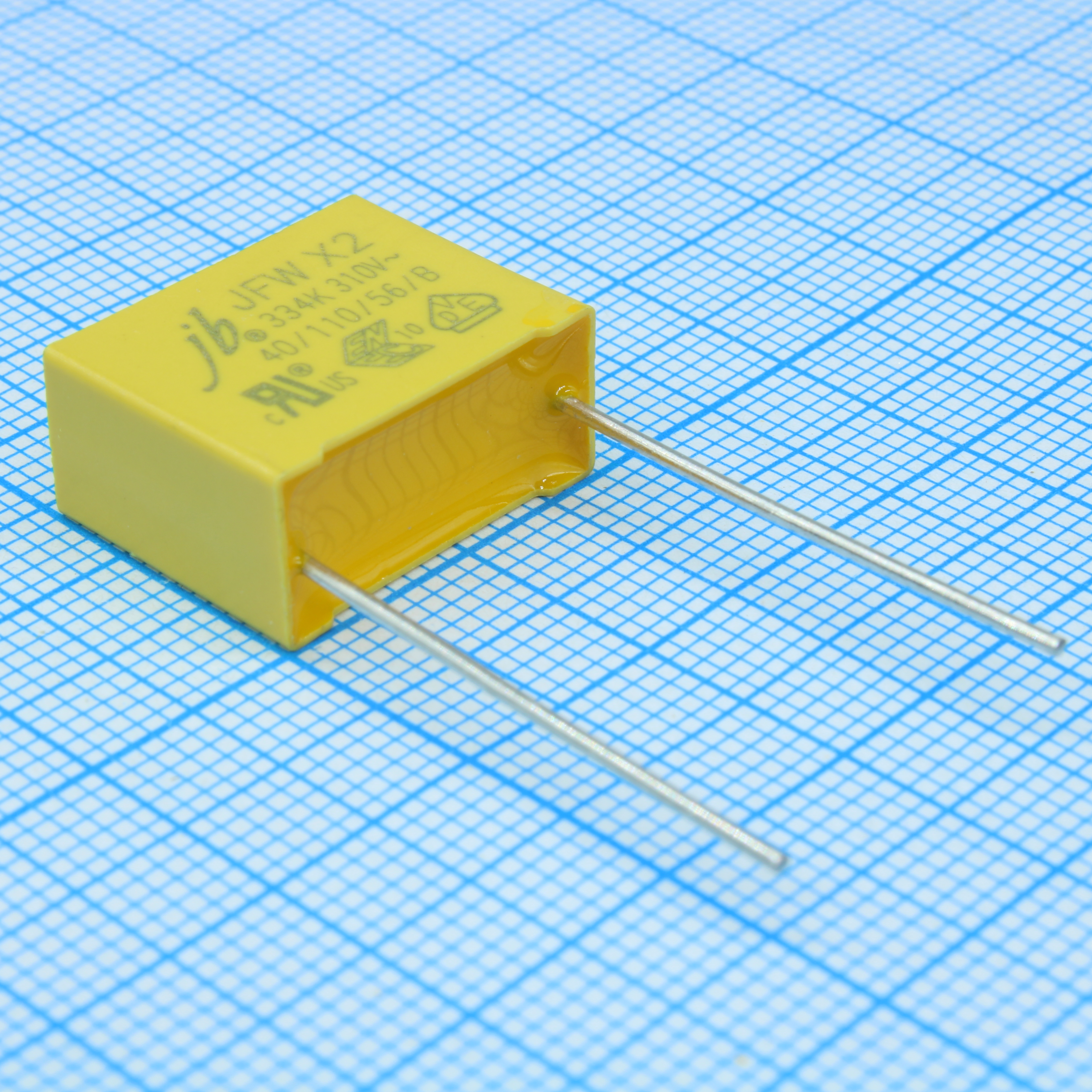 JFW0A9334K150000B - Пленочный помехоподавляющий конденсатор X2 0.33uF, 310V, радиальные выводы с шагом 15mm, (18 x 8.5 x 14.5mm)