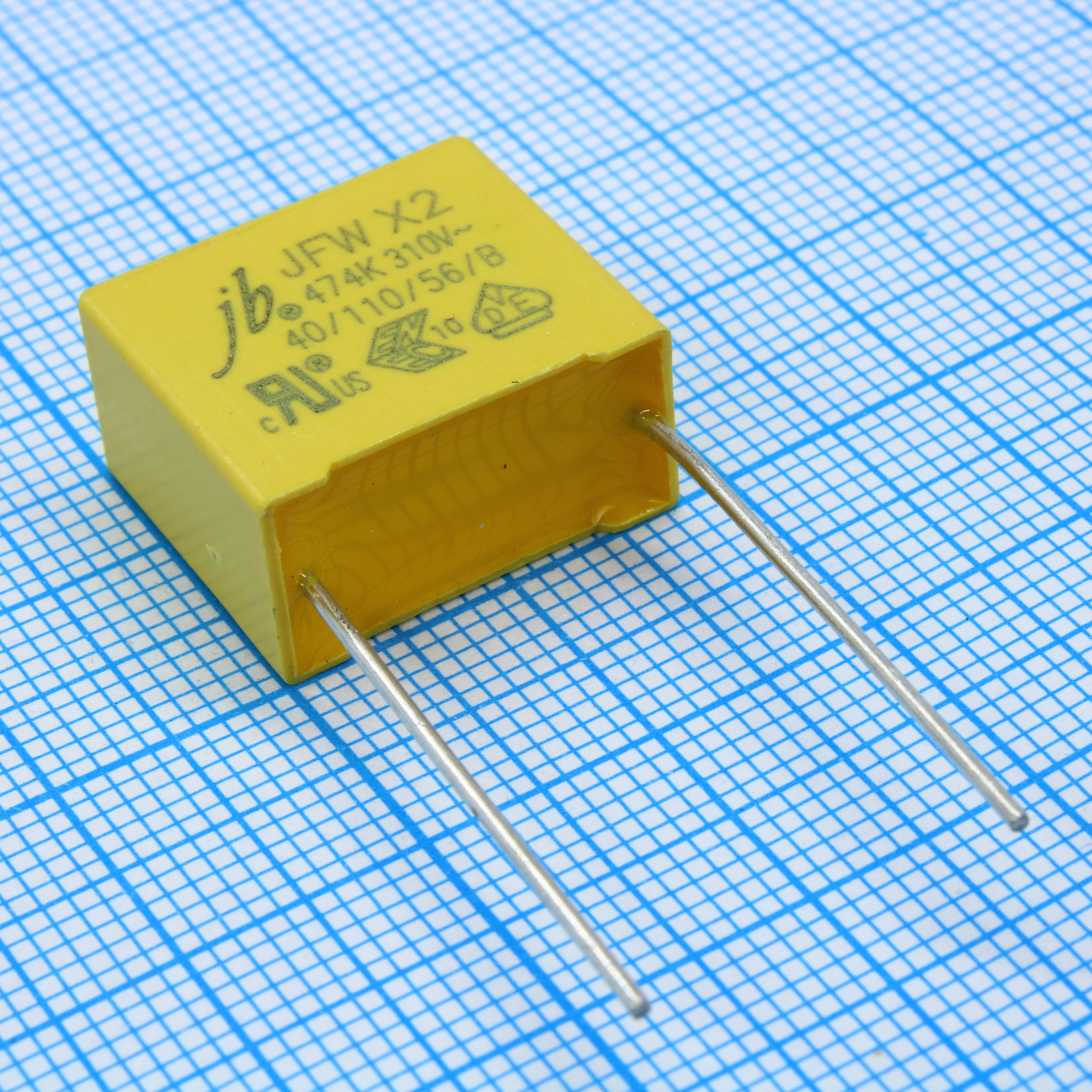 JFW0A9474K150000B - Конденсатор пленочный помехоподавляющий X2 0,47мкФ 310VAC ±10% 18х9.5х15.5мм радиальный 15мм 105°C россыпь
