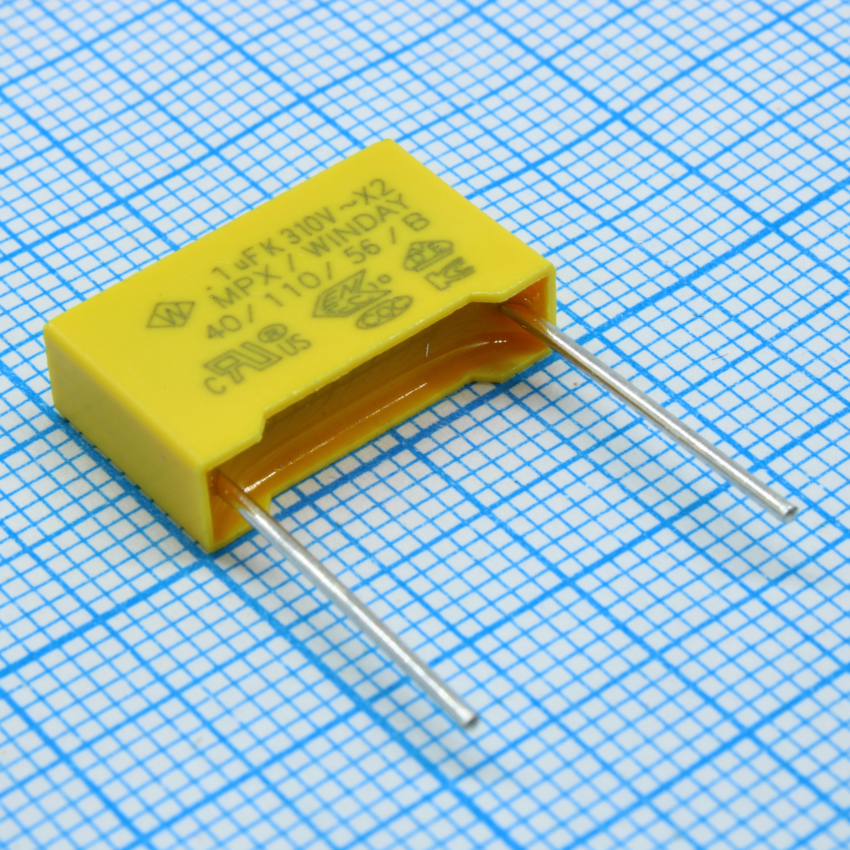 Пленочный конденсатор X2, 310VAC, 0.1мкФ ±10%, размер 18х5х11мм, Р=15 мм, 110°C
