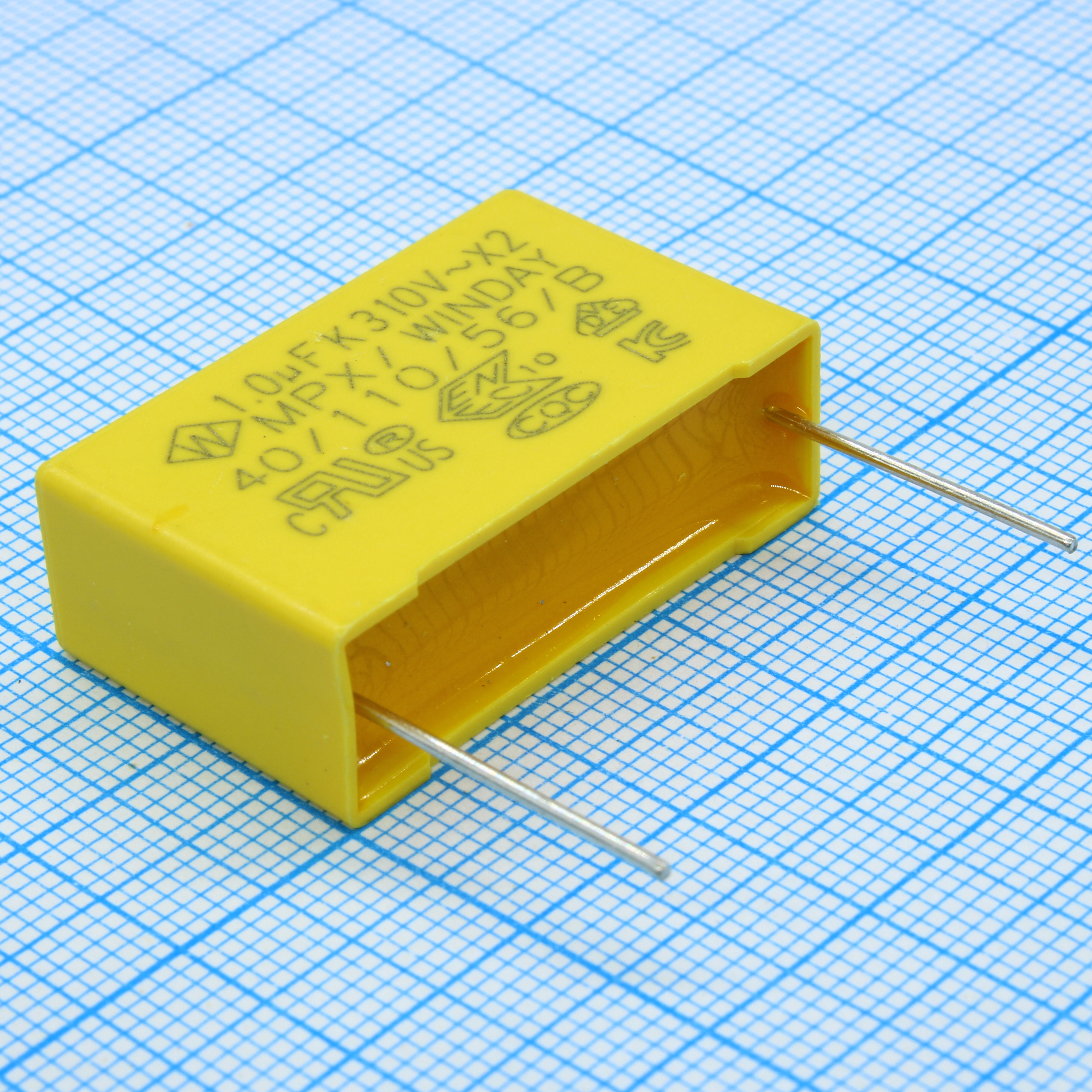Пленочный конденсатор X2, 310VAC, 1мкФ ± 10%, размер 31.5 х 10.8 х 19.5 мм, Р=27.5 мм, +110°C