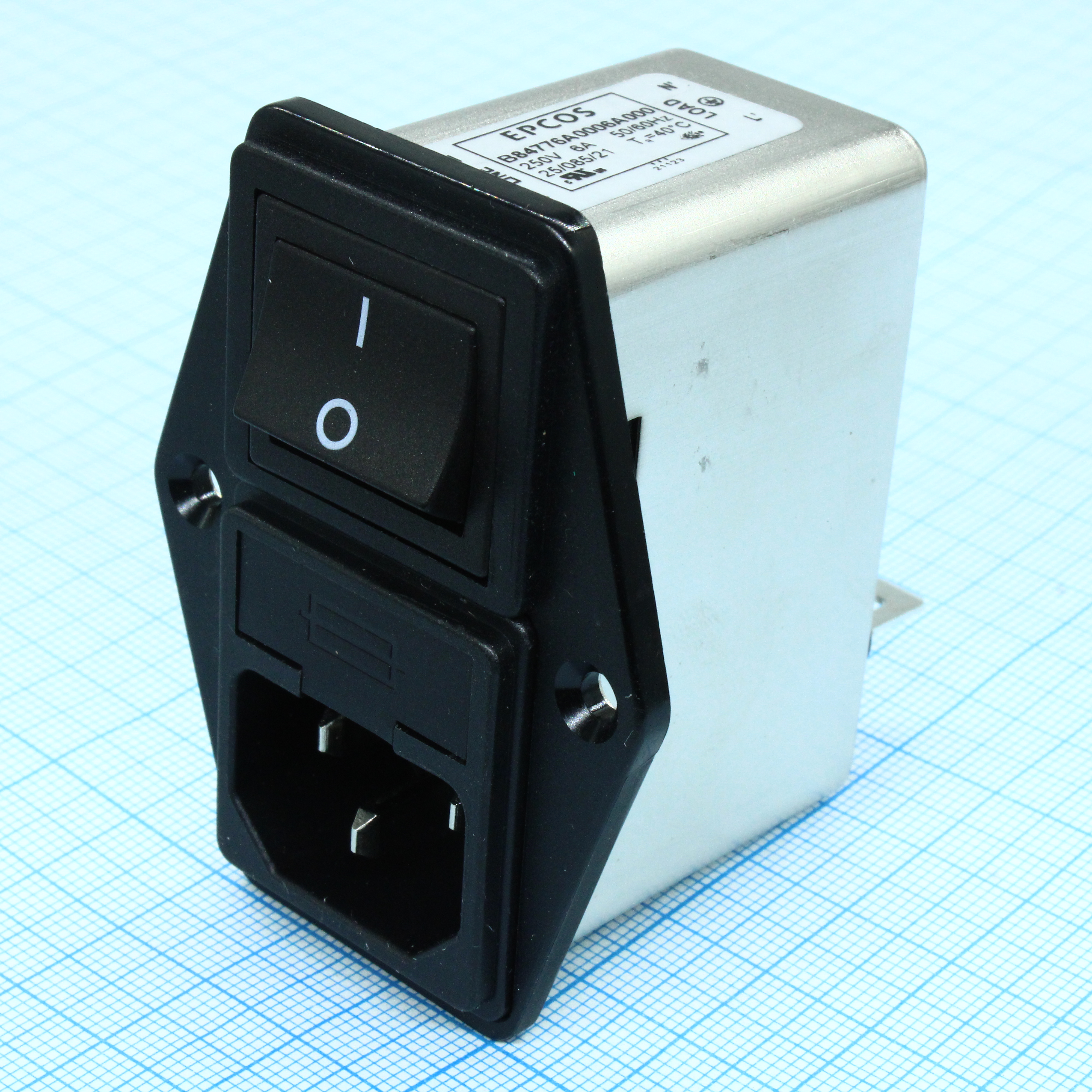 B84776A0006A - Однофазный сетевой фильтр 6А/250В, 2-х полюсный выключатель, держатель под предохранитель 5х20мм