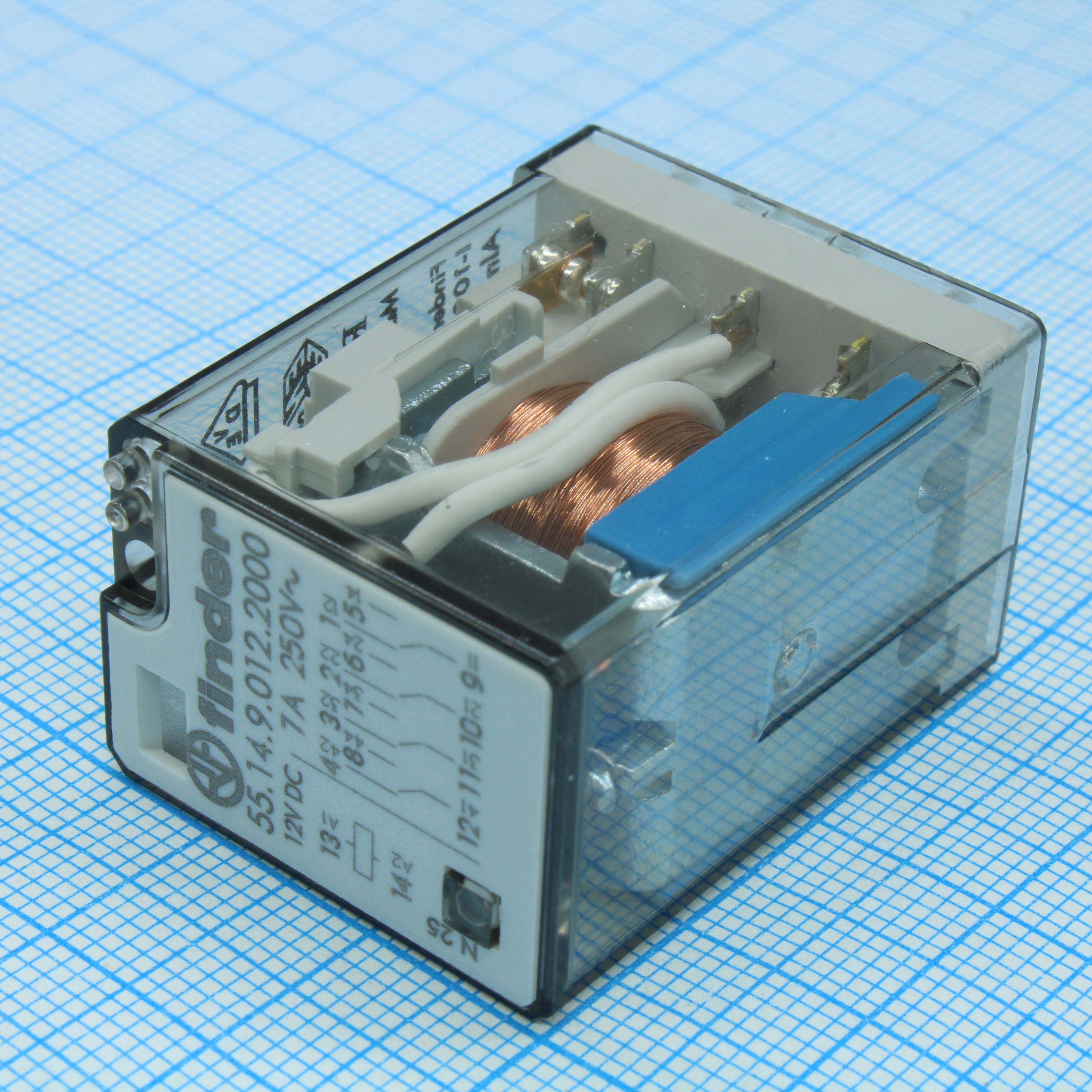 55.14.9.012.2000 - Миниатюрное универсальное электромеханическое реле; монтаж на печатную плату; 4CO 7A; контакты AgCdO; катушка 12В DC; степень защиты RTI; опции: нет