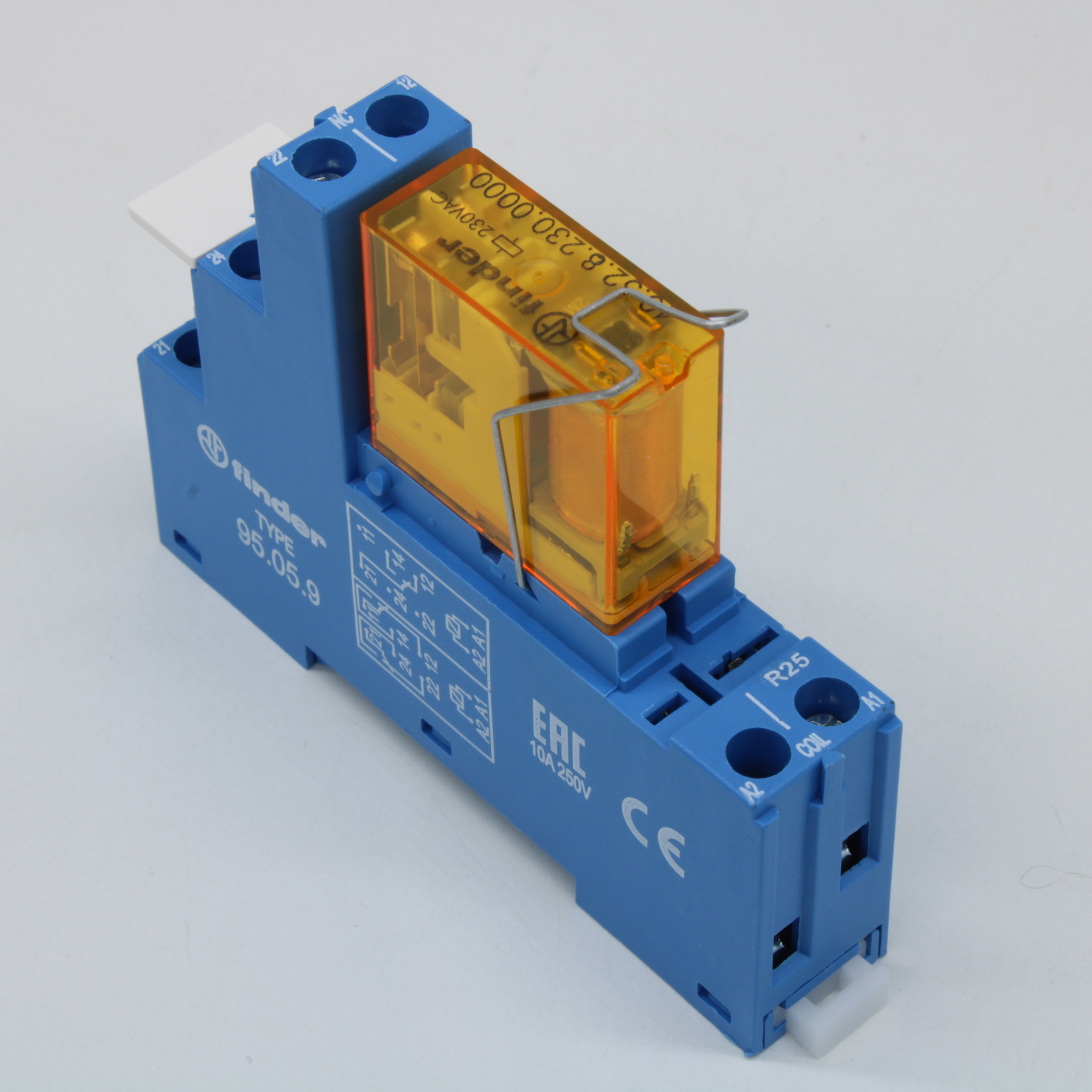 Реле силовое двухполюсное, Uобм=230 В (АС), до 8 А, на DIN-рейку