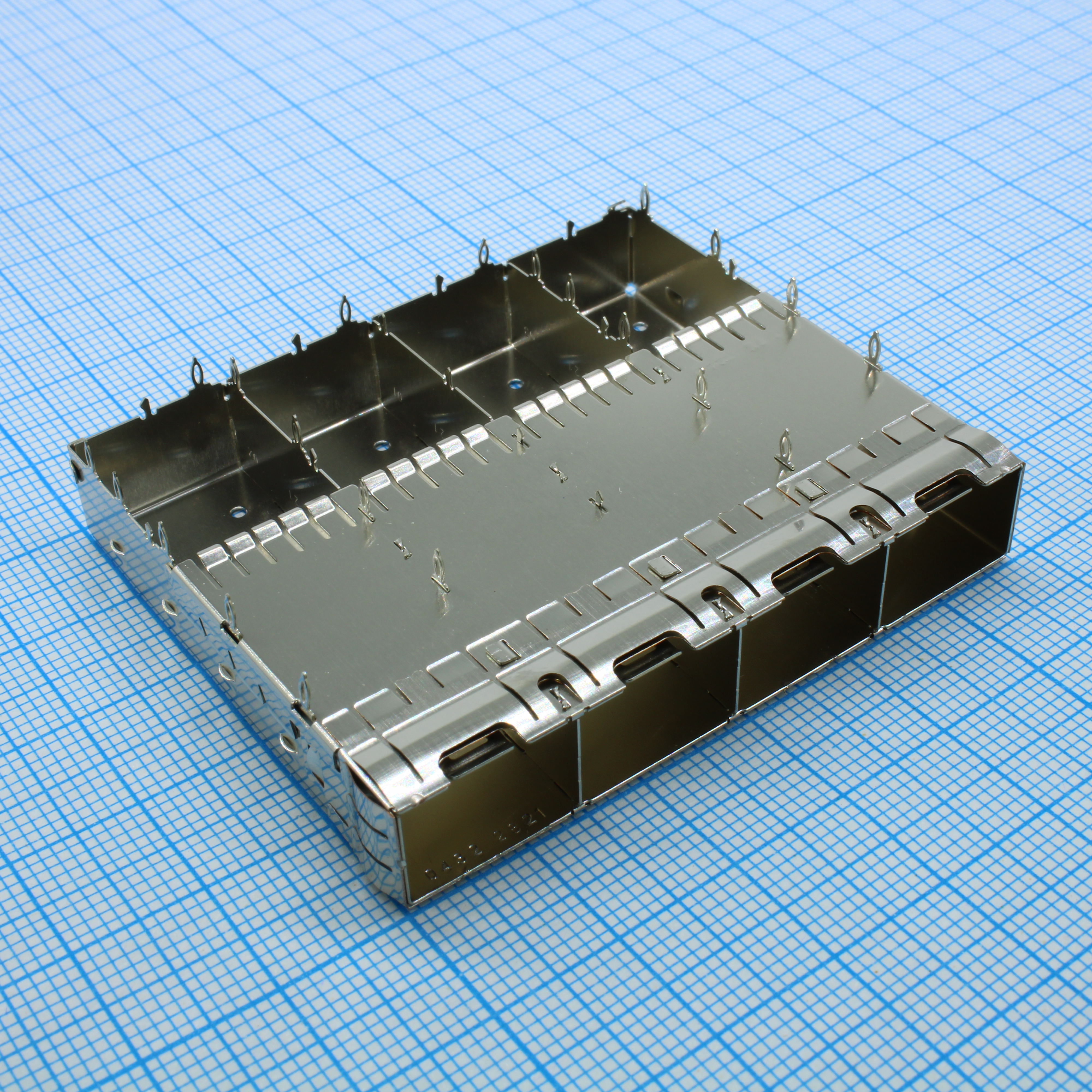 Корпус соединителя SFP+, 1 на 4, сдвоенная, пружинная прокладка лицевой панели, штифты с прессовой посадкой 3,05 мм, подбрюшные пружинные пальцы