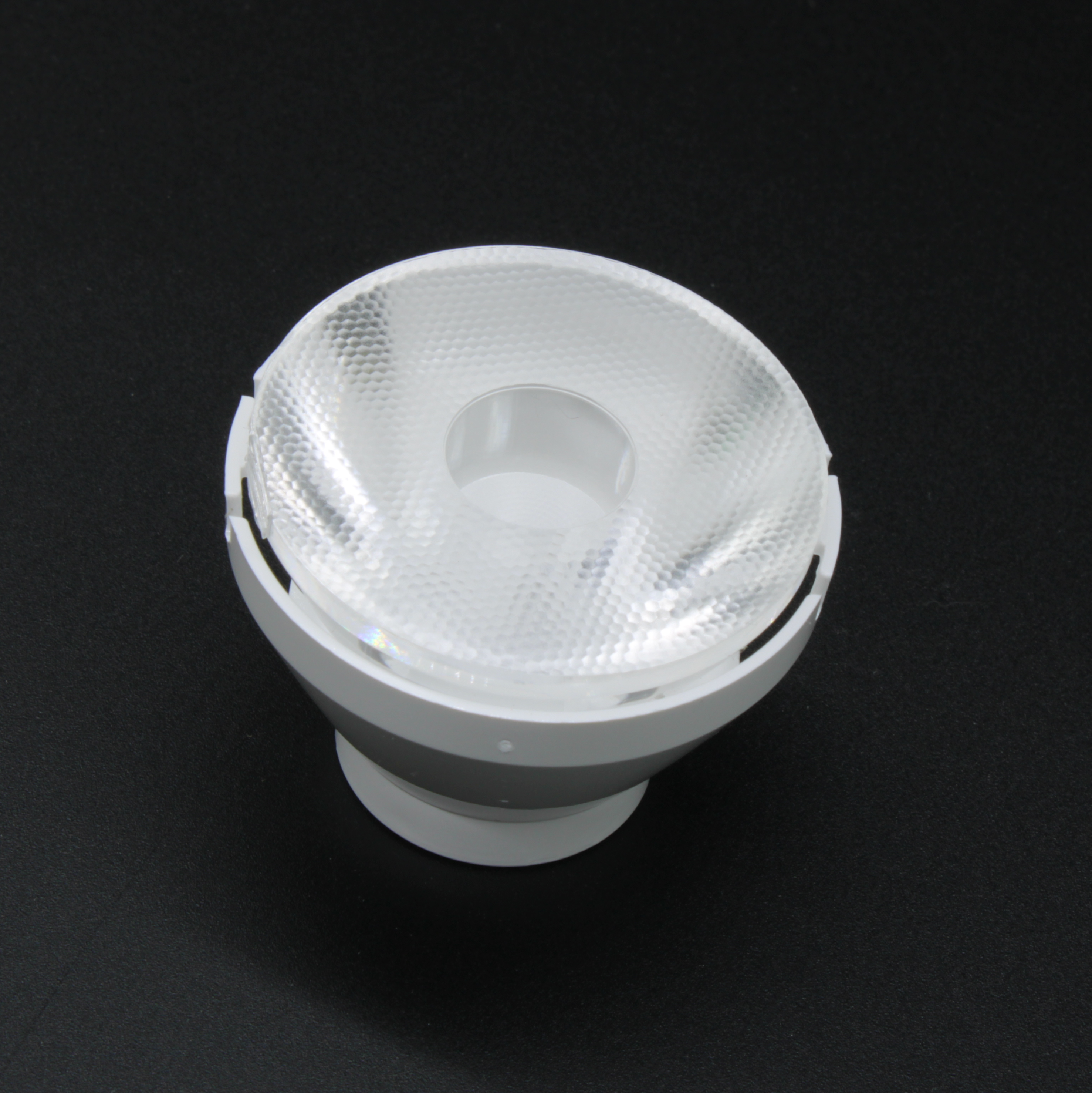 AJS35D22H15G - Линза белая с держателем для светодиода 3535/3030/5050XML, эфф=93%, 15°, D=35mm H:23,33mm, PMMA