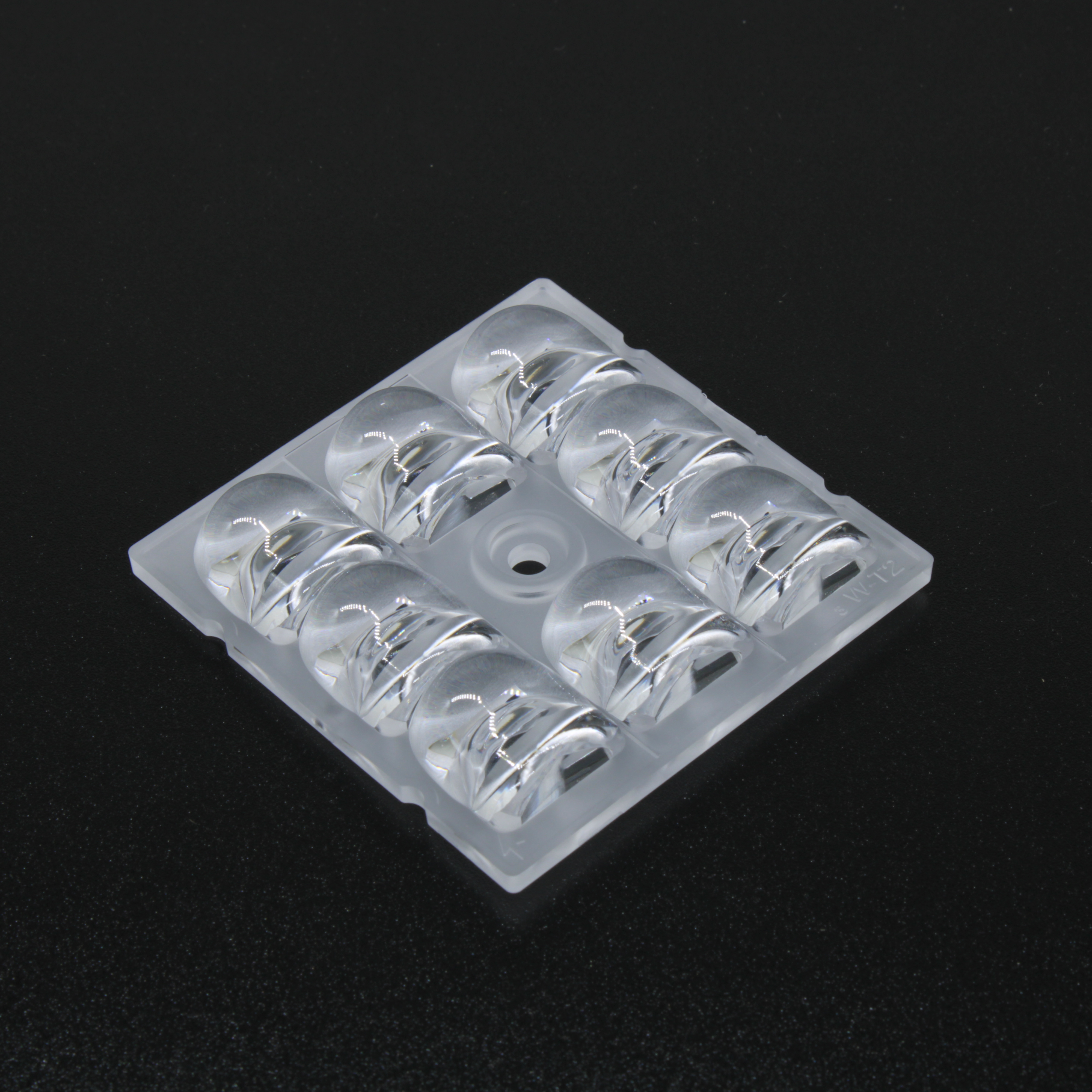 AJSP50D8LED45G - Групповая квадратная линза на 8 светодиодов 5050/3535/3030 , Asymmetric 45°, 50x50mm H:8.11mm, PC