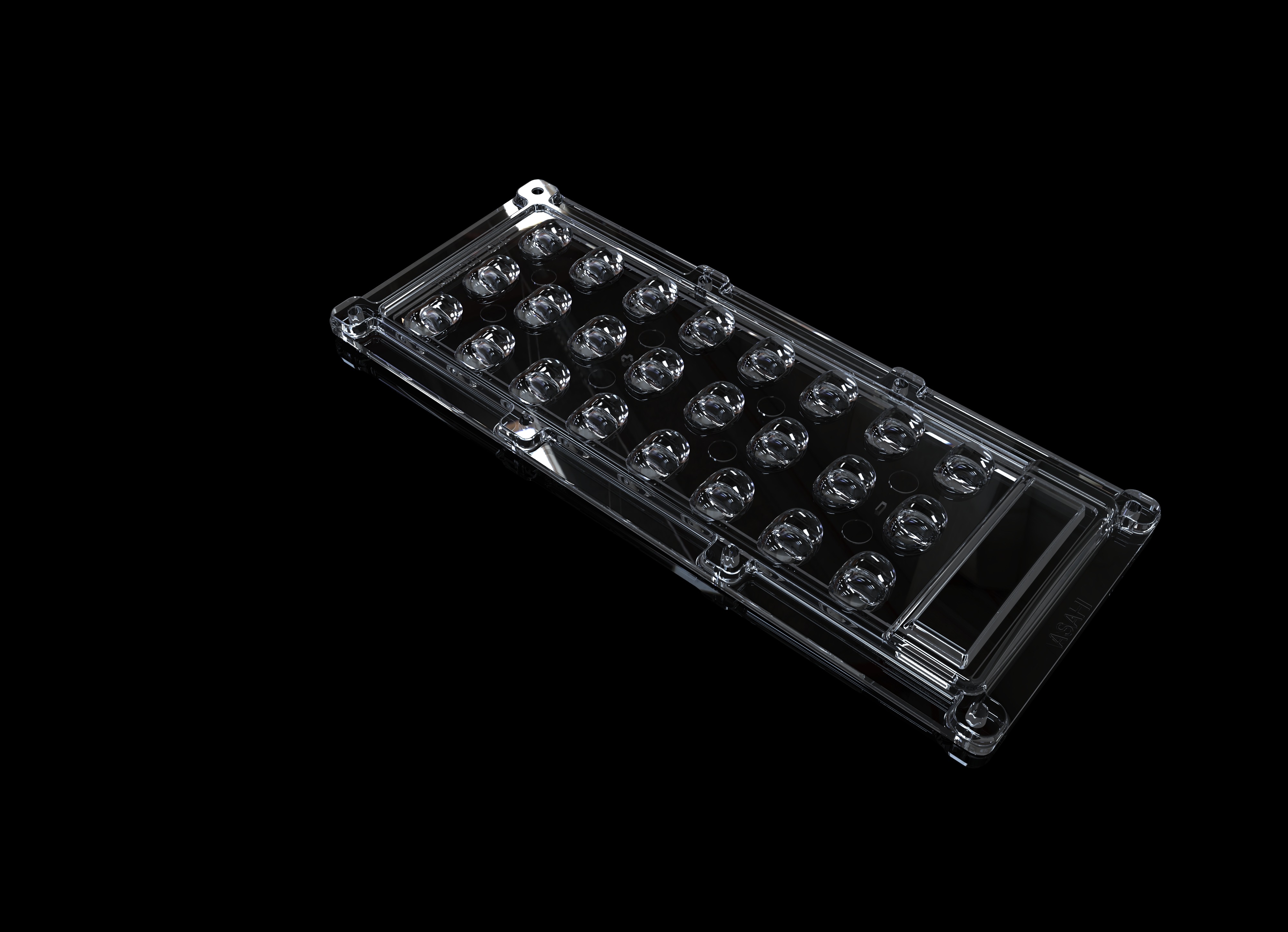 ALST173D24LEDT2M - Групповая прямоугольная линза 3x8 на 24 светодиода 3030/3535/5050, эфф=90%, диаграмма T2, 173x71.4mm H:9.3mm, PMMA